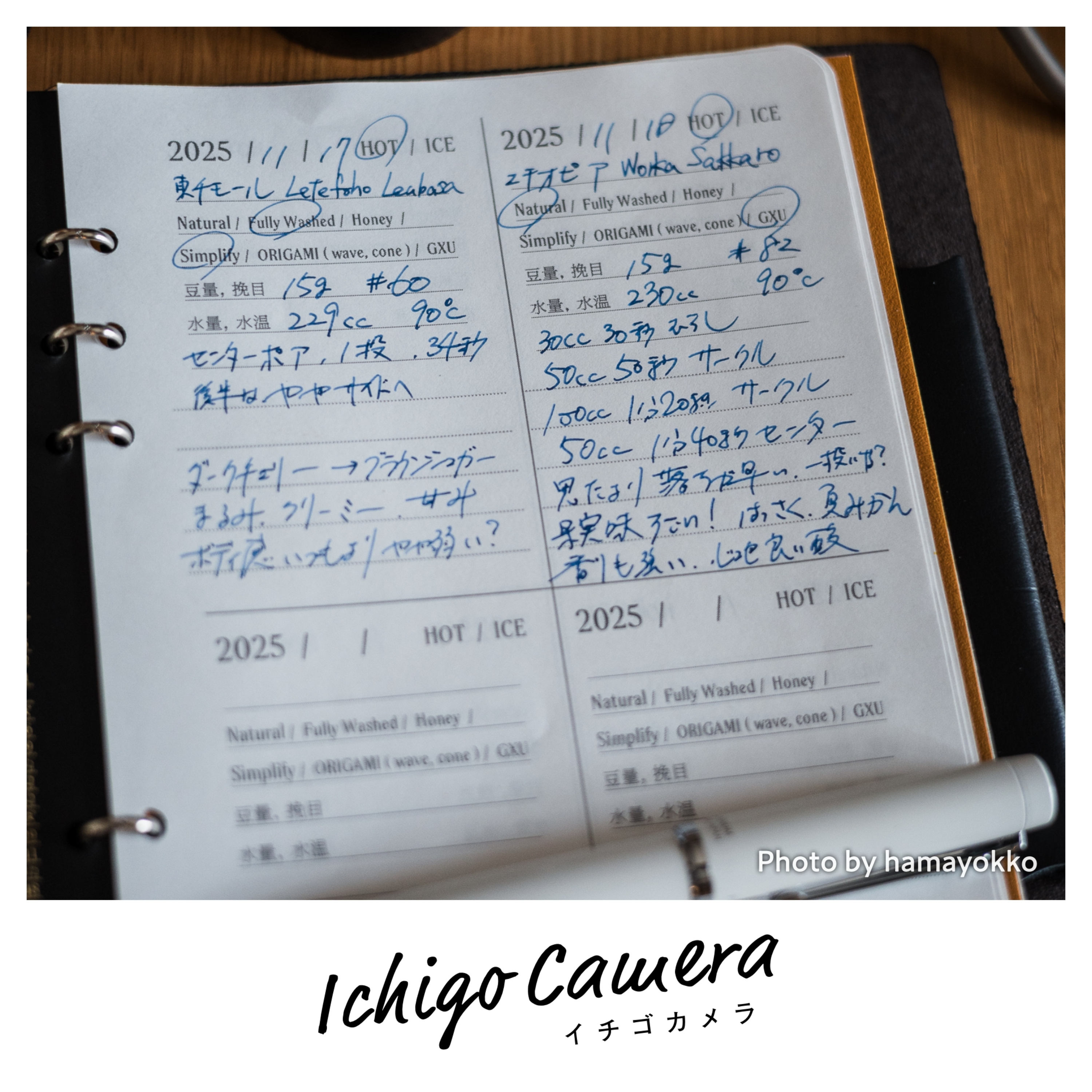そうですね。 コーヒー日記みたいな。 そうなんですよ、コーヒー日記的なものを。 これちょうど僕たぶんほぼ毎日コーヒー飲むんで、しかも毎回その入れ方とかを変えていれたりするから、これをずっと記録していこうと思って。