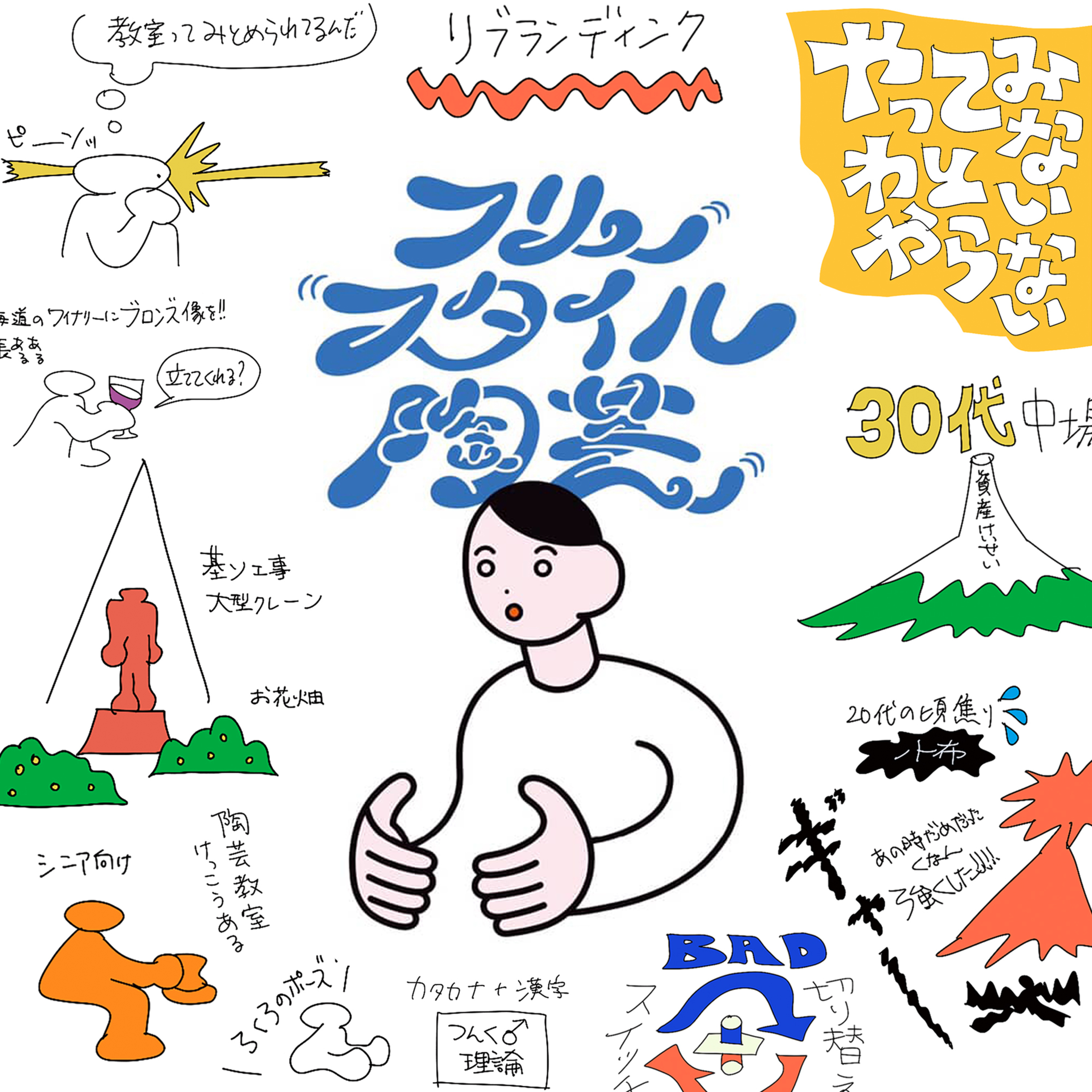 『フリースタイル陶芸』のロゴとS2_ep.019を話しながら描いたOJIYUさんのキキガキ