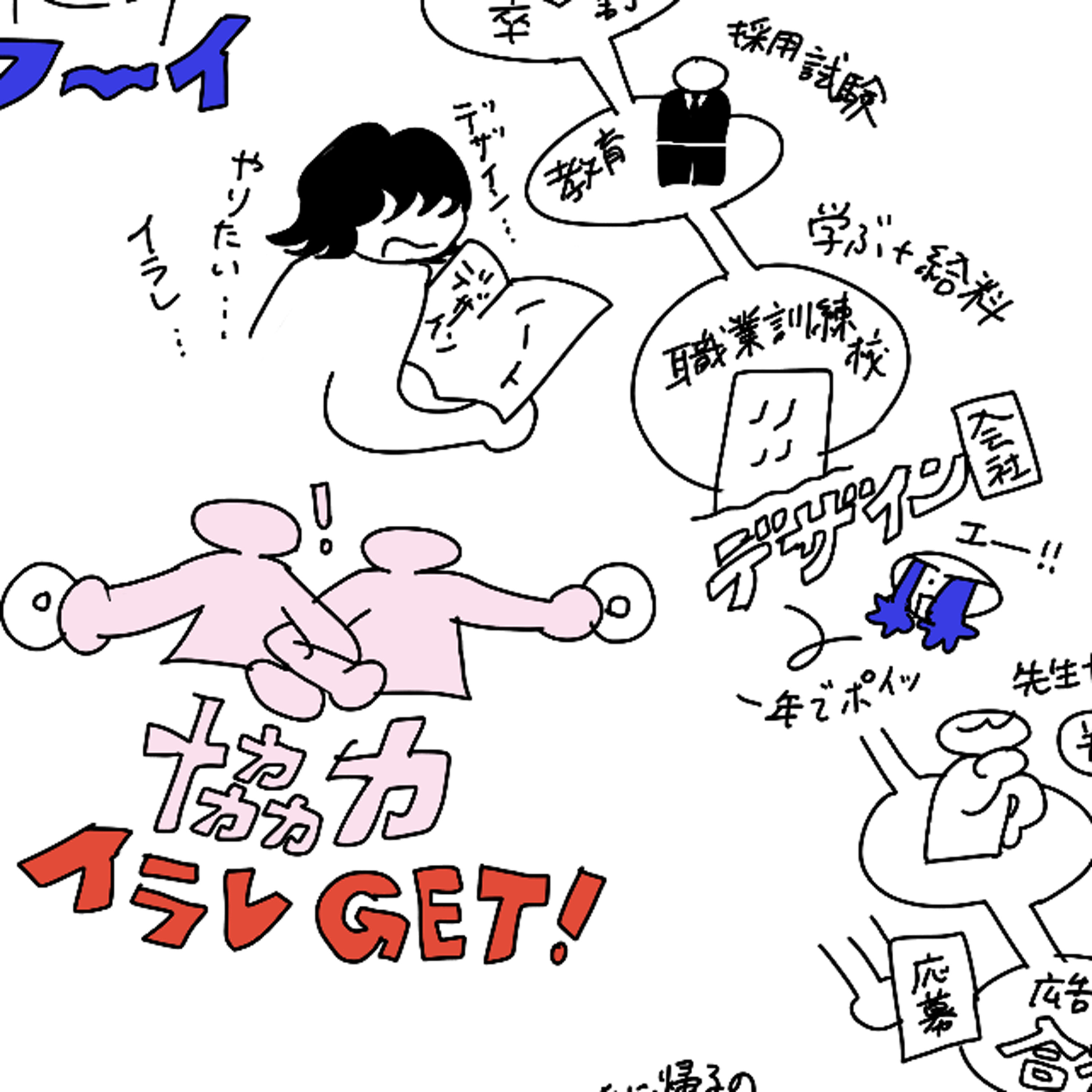 ゲストはイラストレーターの山里美紀子さんです/親は絵に反対/趣味の絵は『浦安鉄筋家族』/「デザイン」との出会いは地味な缶ジュース/教育学部に美術の抜け道/生物が得意分野/美術系大学は応援しないよ/先生になる気はない/イラレがどうしても使いたい(14万円)/奨学金を使ってしまって家族会議/どうしても「デザイン」がやりたくて職業訓練校/1年でポイッ(?)/とりあえず臨時教員/広告代理店にひと枠/これはデザイナーじゃない…/ブラック最後の世代/どん底で夢は叶えた/「デザイン」はやめたくない/“感謝されていない”と感じるツラさ/突然のベーグル/お客さんからのありがとう/軽やかな気持ち⇨絵/予期せずイラストのお仕事/パレットクラブにどうしても行きたい/沖縄で展示をします/次回へ続きます