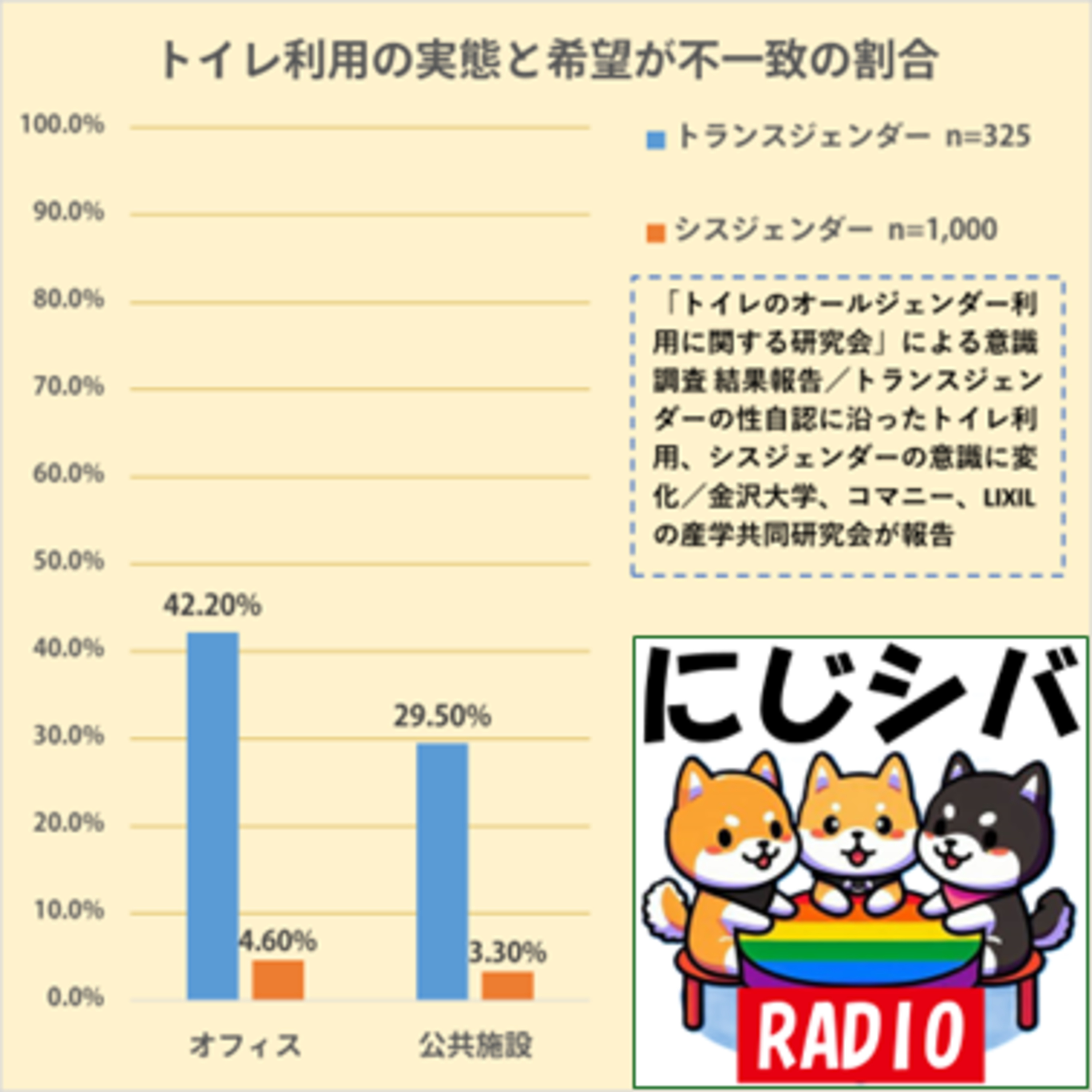 かつトランスジェンダーの人も自分が望むトイレを使えるようにするにはどうしたらいいのかっていう方向に話を進めないといけないよねって話だと思います。