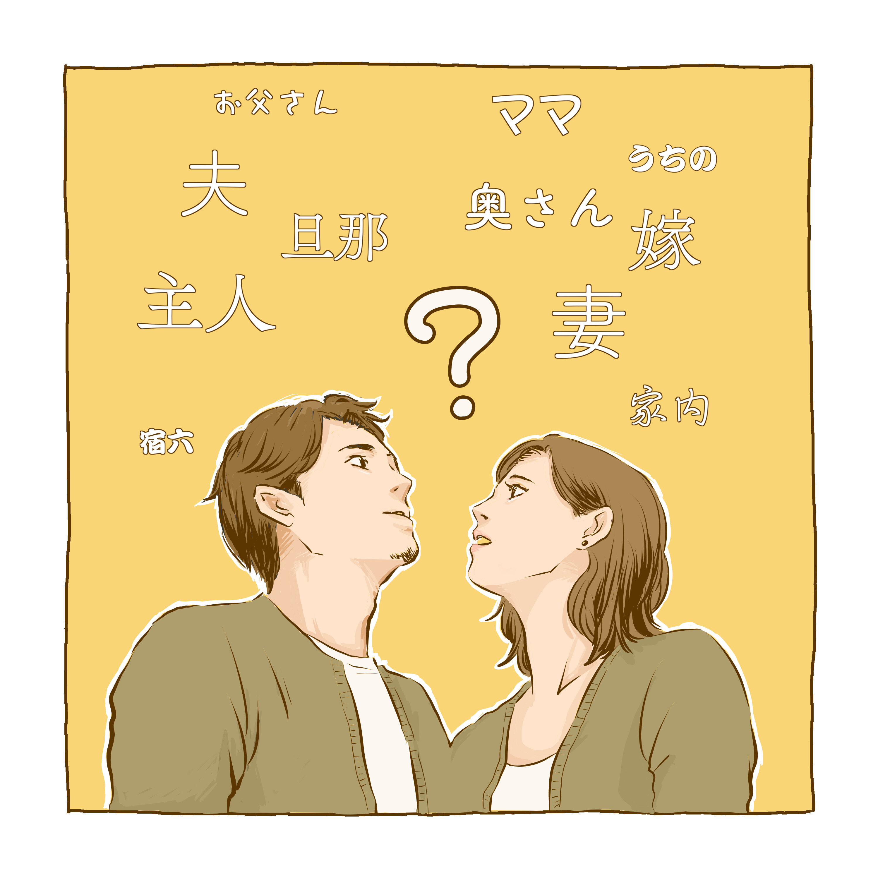 自分のパートナーを、第三者のパートナーを、みなさんはどのように呼んでいますか?英語などと比較すると呼称の選択肢が多い日本語…。その上に世代ごとの文化の違いもありますよね。一体何が正解なの?!と迷った経験がある方も多いのではないでしょうか。言葉に対しての自分の気持ちは大事にしたい、しかし相手に違和感を与えたり考えを押しつけるようなことはしたくない…我々も日々悩んでおります。特に意識したことなかったという方も是非このエピソードをきっかけに考えてくださるとうれしいです!