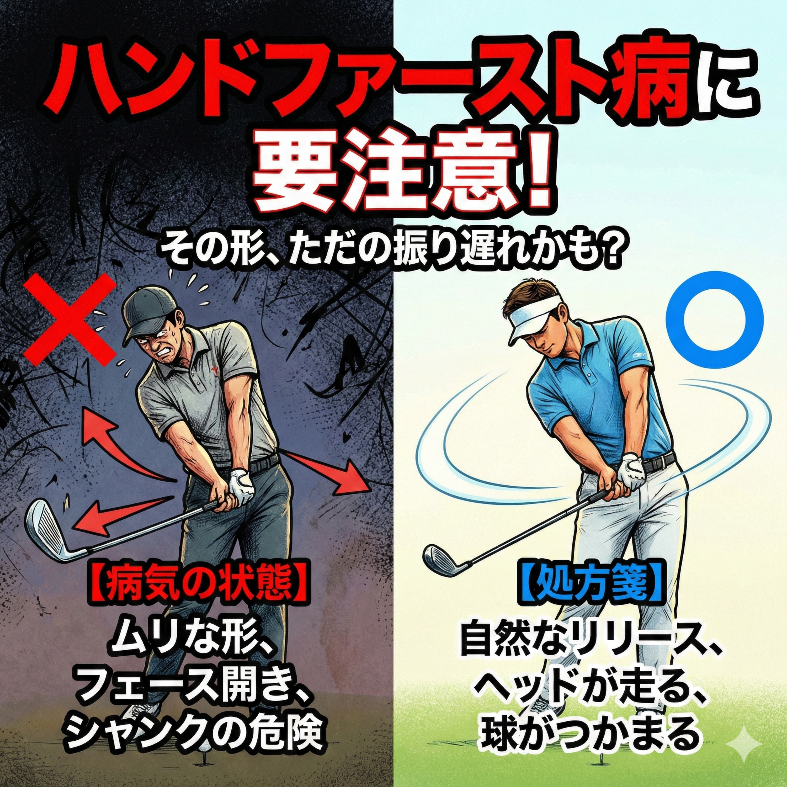 そちらではしっかりクラブを振り遅れさせないための練習方法などを紹介しておりますので、