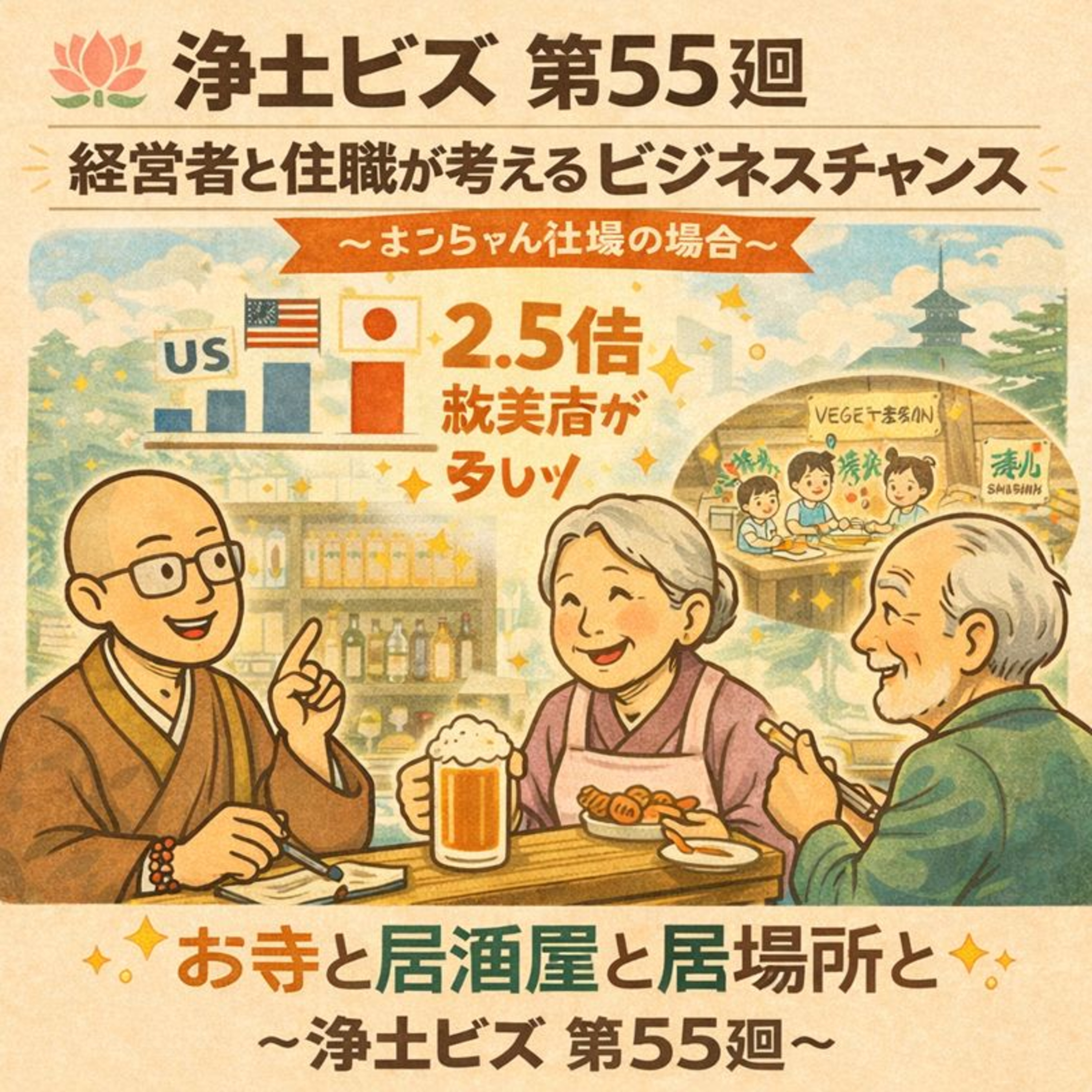 さらに話題は、お寺の変革と新たな挑戦へ。 「子ども食堂」や「ベジタリアンカフェ」など、数々の試行錯誤を経験してきたよっちゃん住職が、最終的にたどり着いた「お寺が本当に果たすべき役割」という原点についても深く切り込みます。