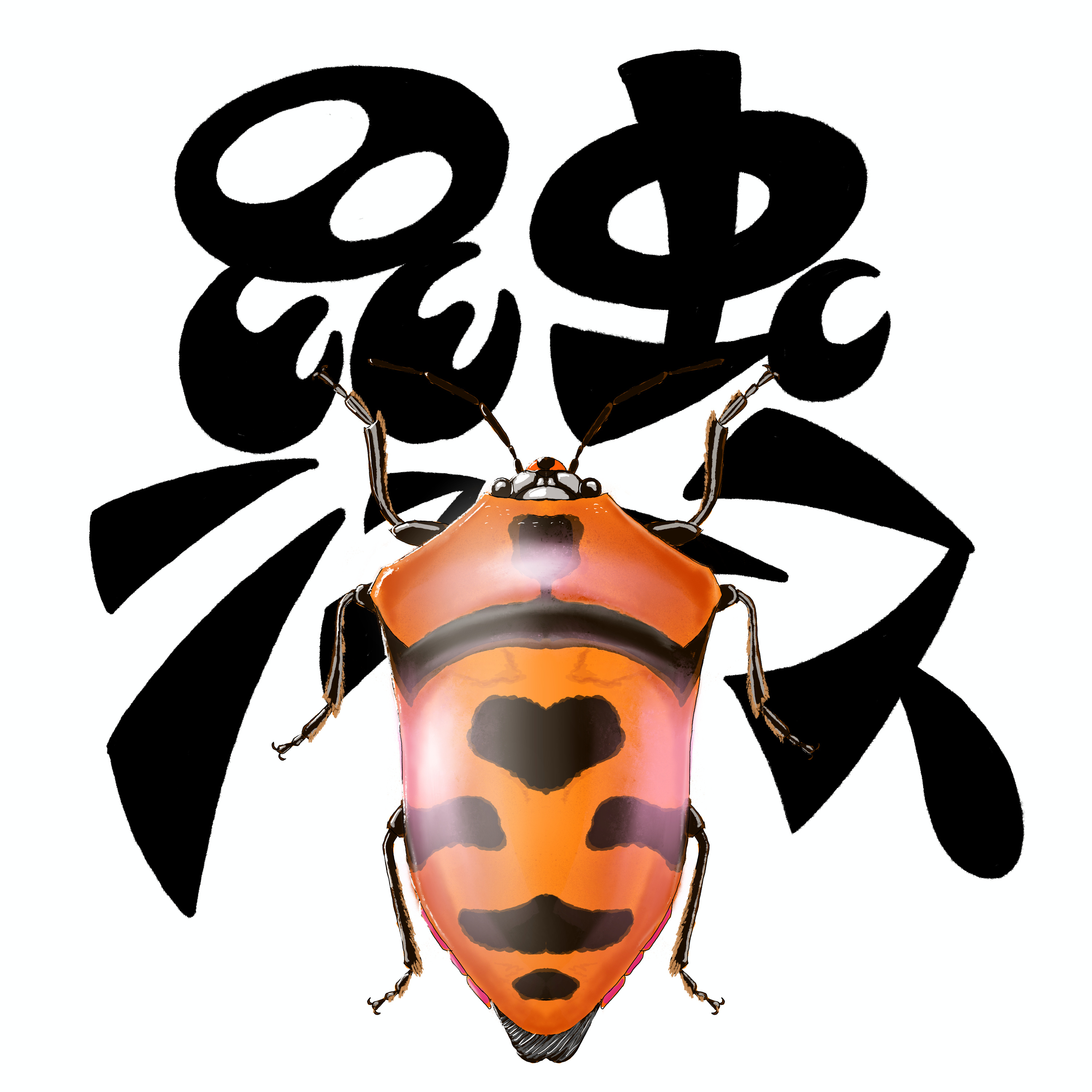 形容しがたい模様やねんけど、全身が黒で、背中の方に黄色と赤の目玉みたいな模様が整列してるんです。