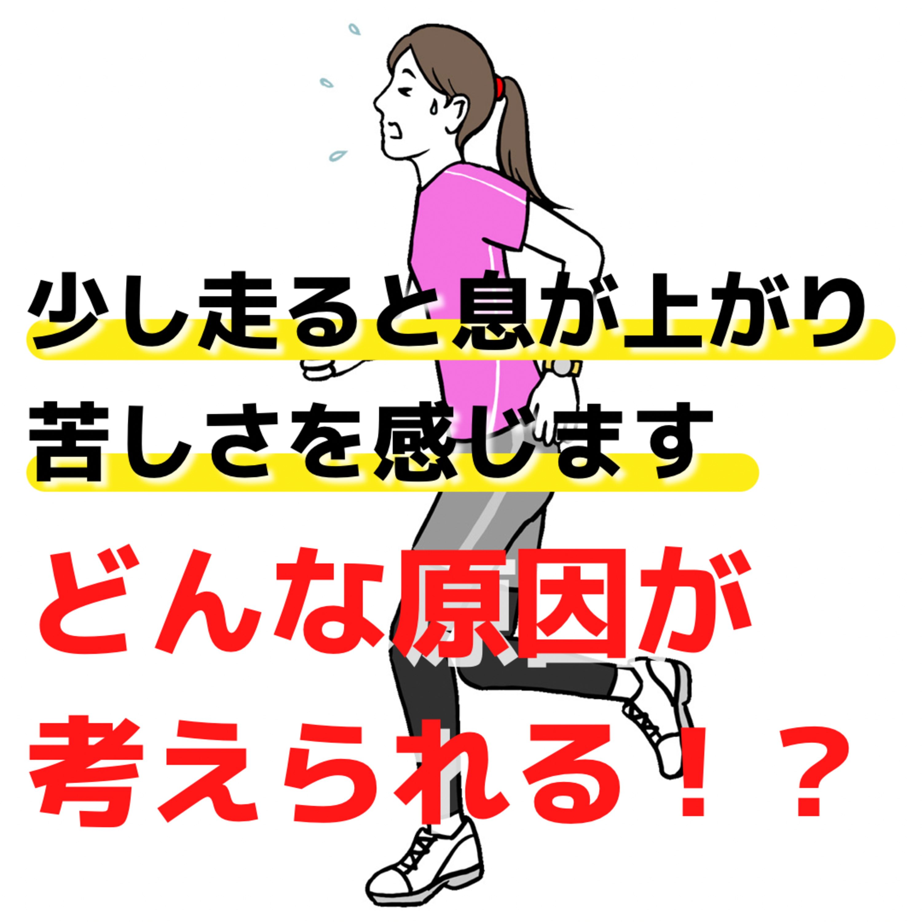 今日のお悩みは「少し走ると息があがり、苦しさを感じます。どんな原因が考えられますか?」です。