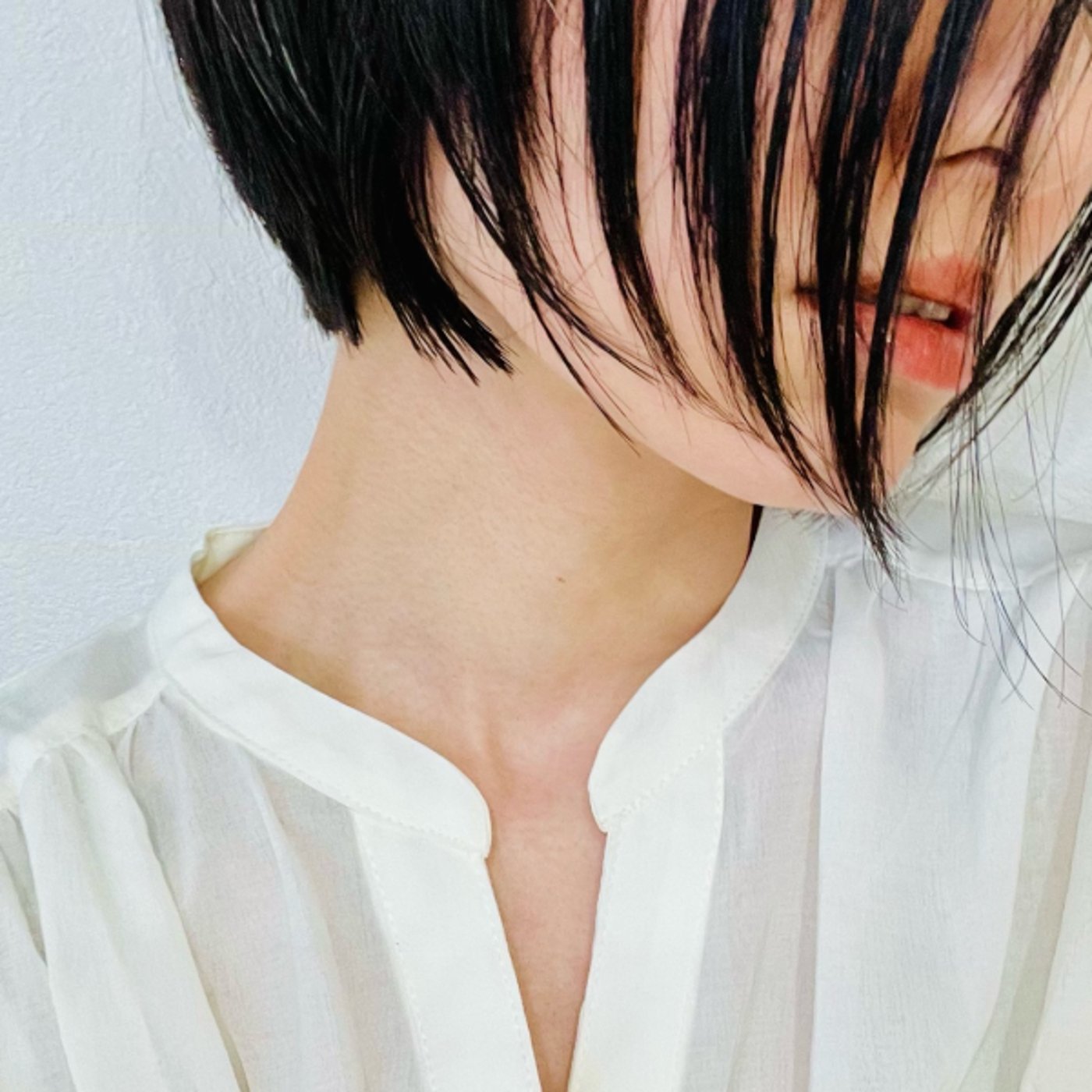 ゆうこさんね、そうそうそう、すごいですよね。で、この写真は帰ってきてからちょっともうカットモデルに自分がもうなった気持ちで自分で撮りました。自分で洗面所でちょっとカットモデル風に撮ってみた写真を今背景にしております。