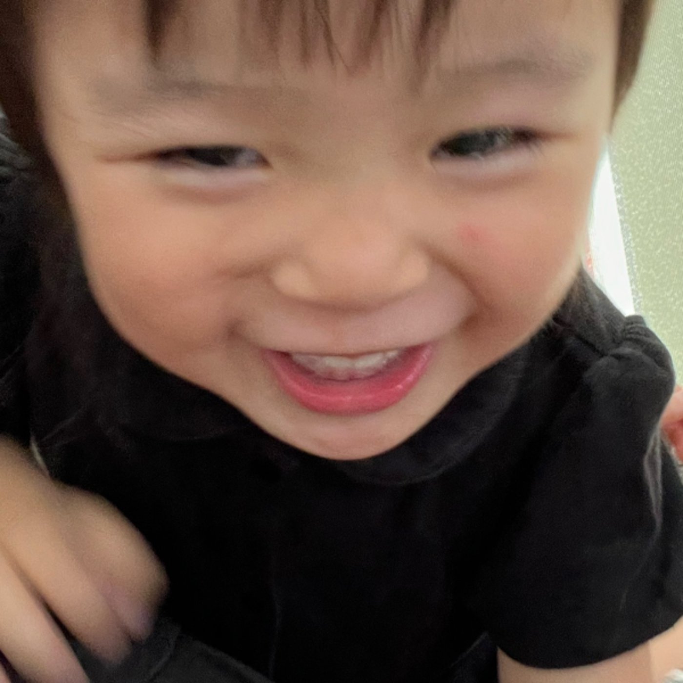 まだね、寝てはないですが、今ね、トントンをしろと命じられたので、今背中をトントンしながらつらいぶしています。