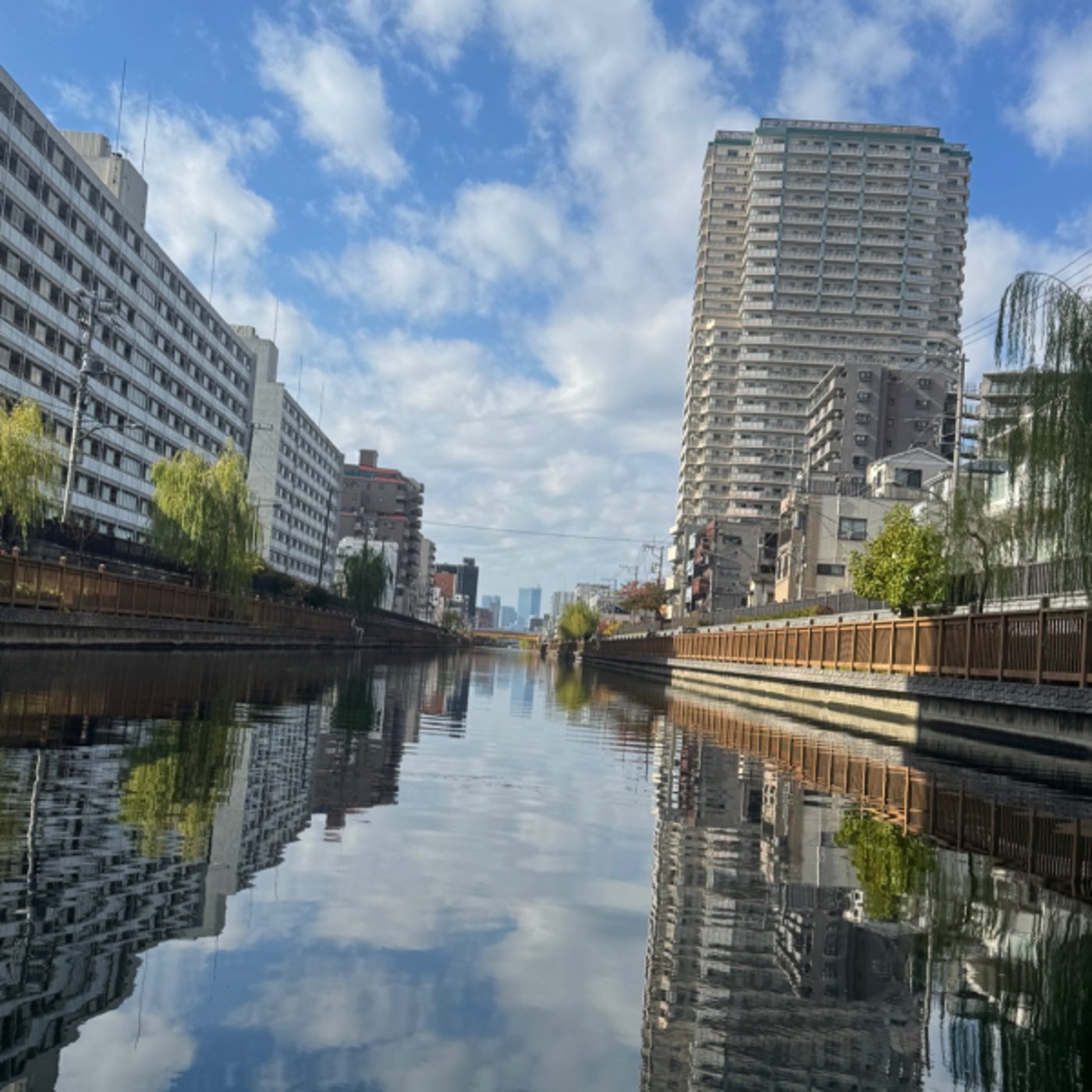 川に周りの景色、空も映り込んでるね。