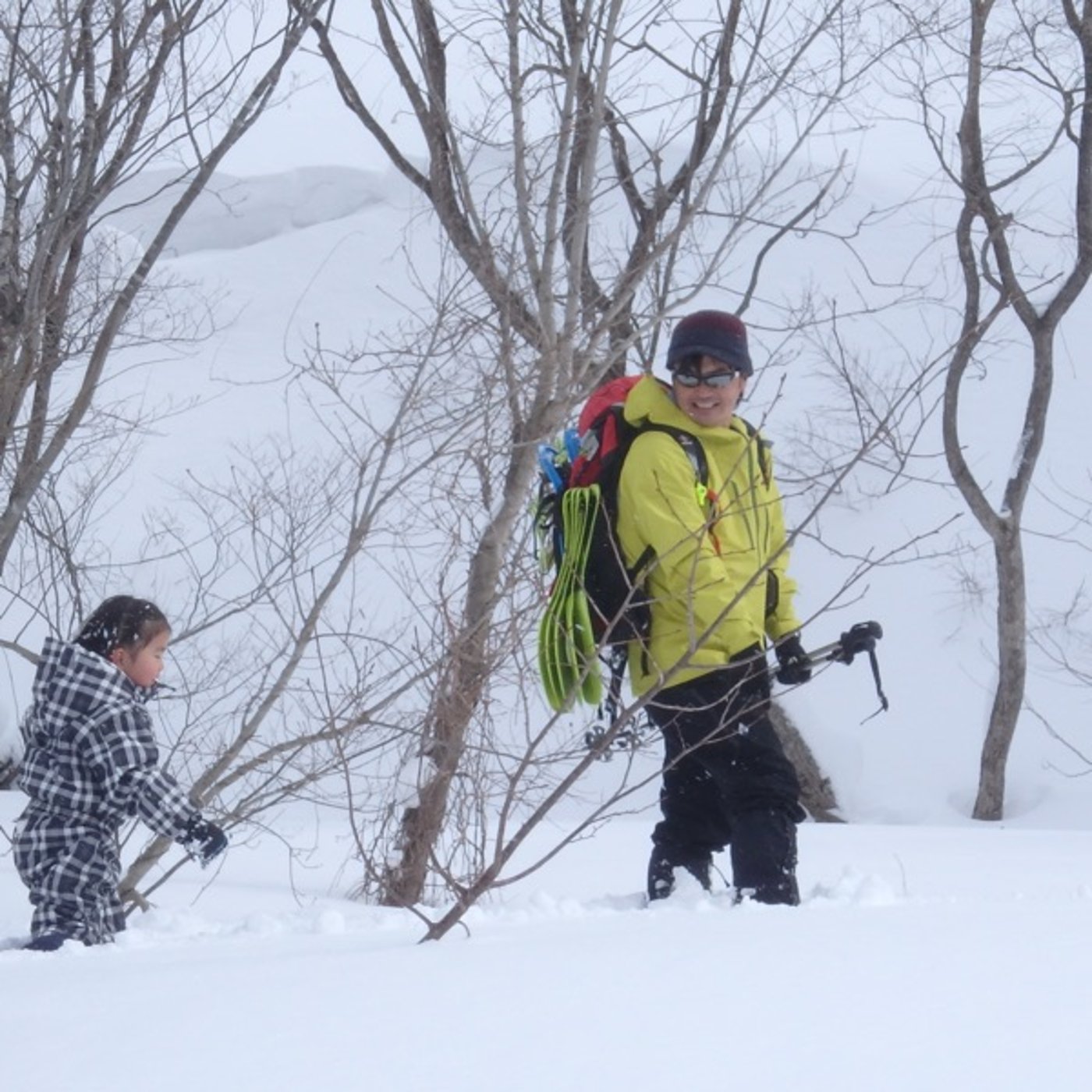 通常腰ぐらいまで埋まっちゃうようなところを、漢字記みたいなスノーシューを履くと、膝上ぐらいまでになるかな。