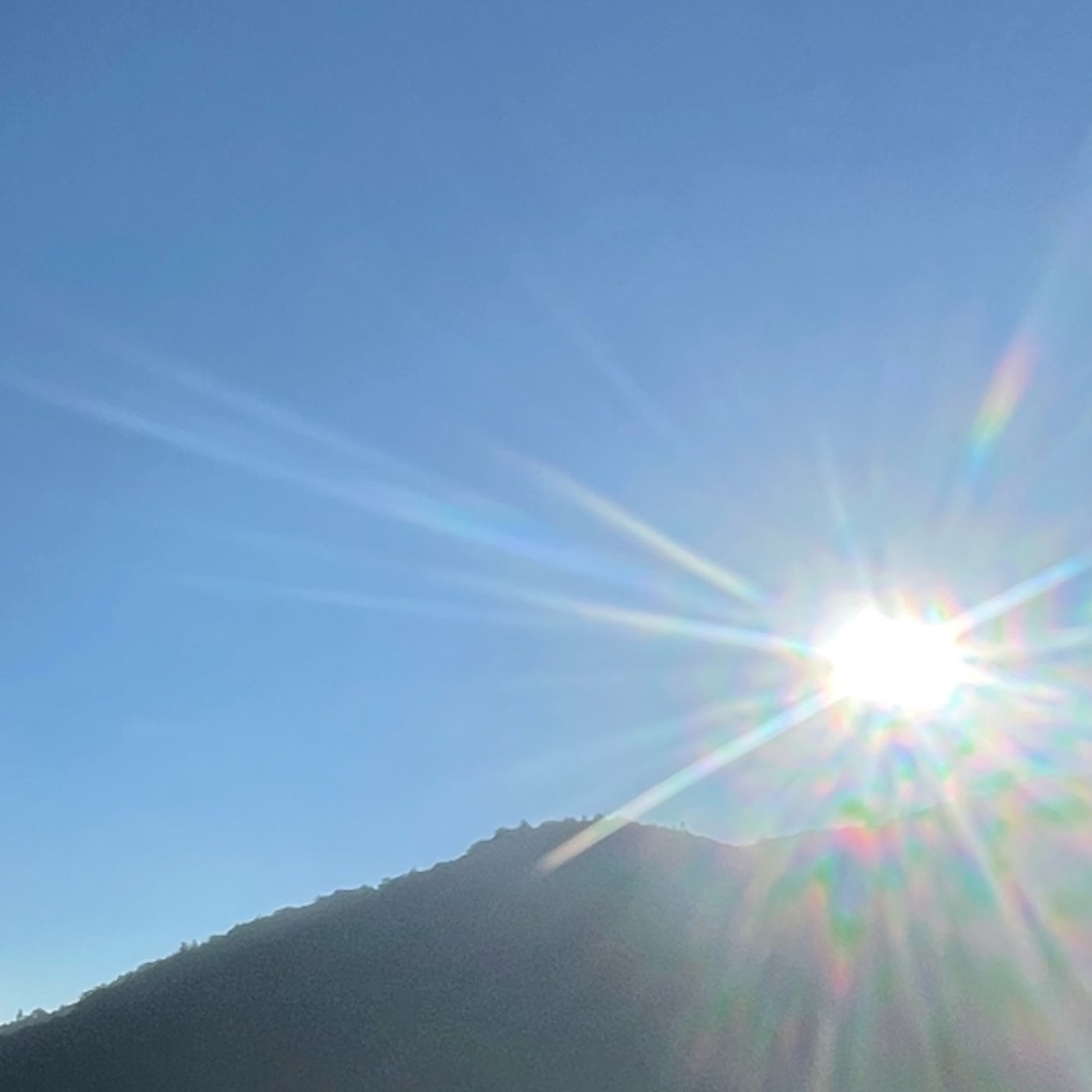 で、今ね、朝日がちょうど上ってきてくれて、暑いじゃなくてね、暖かい。