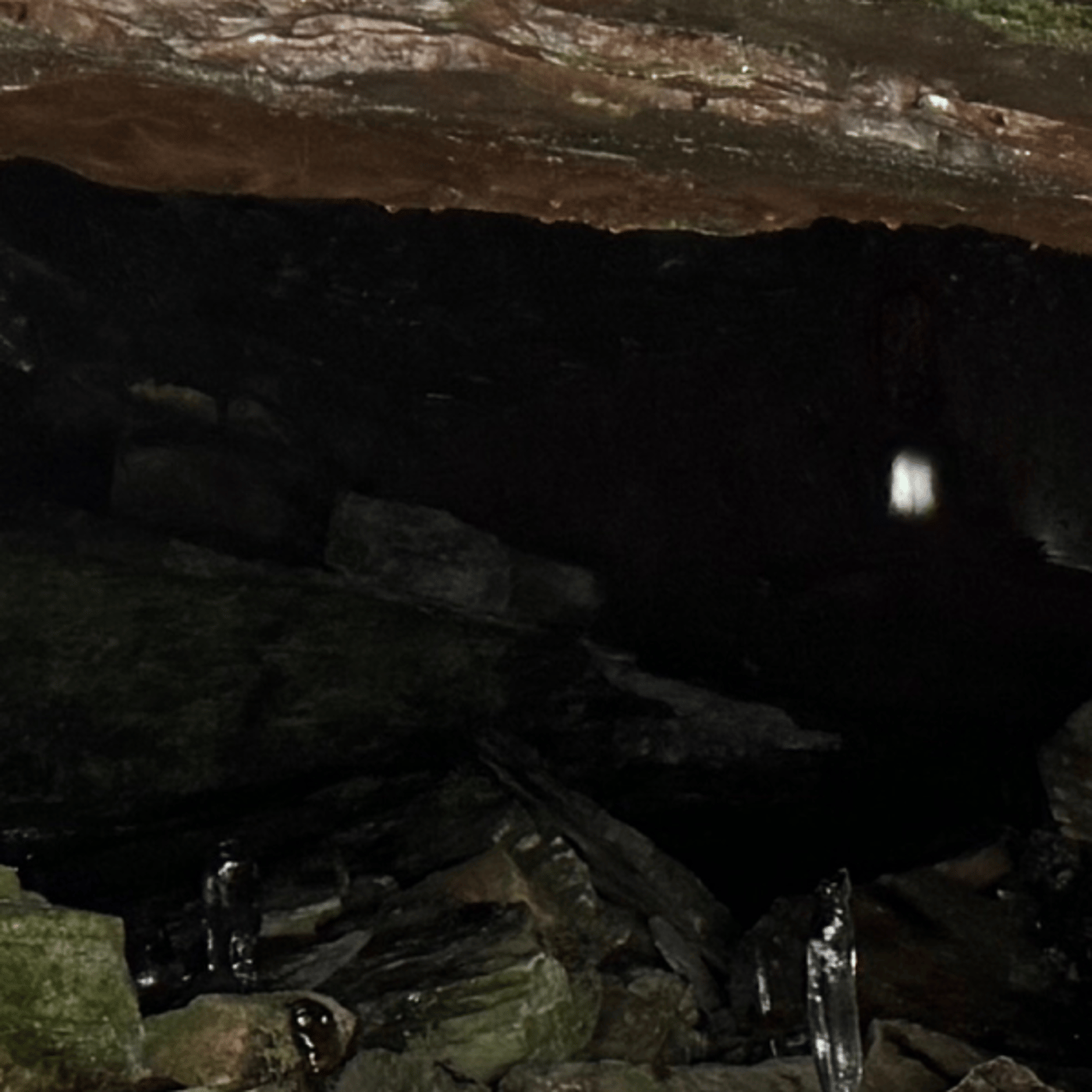あるね、洞窟。 そこに行ってまいりました。すごい斜面だよ。雪がなかったら逆に登れない。