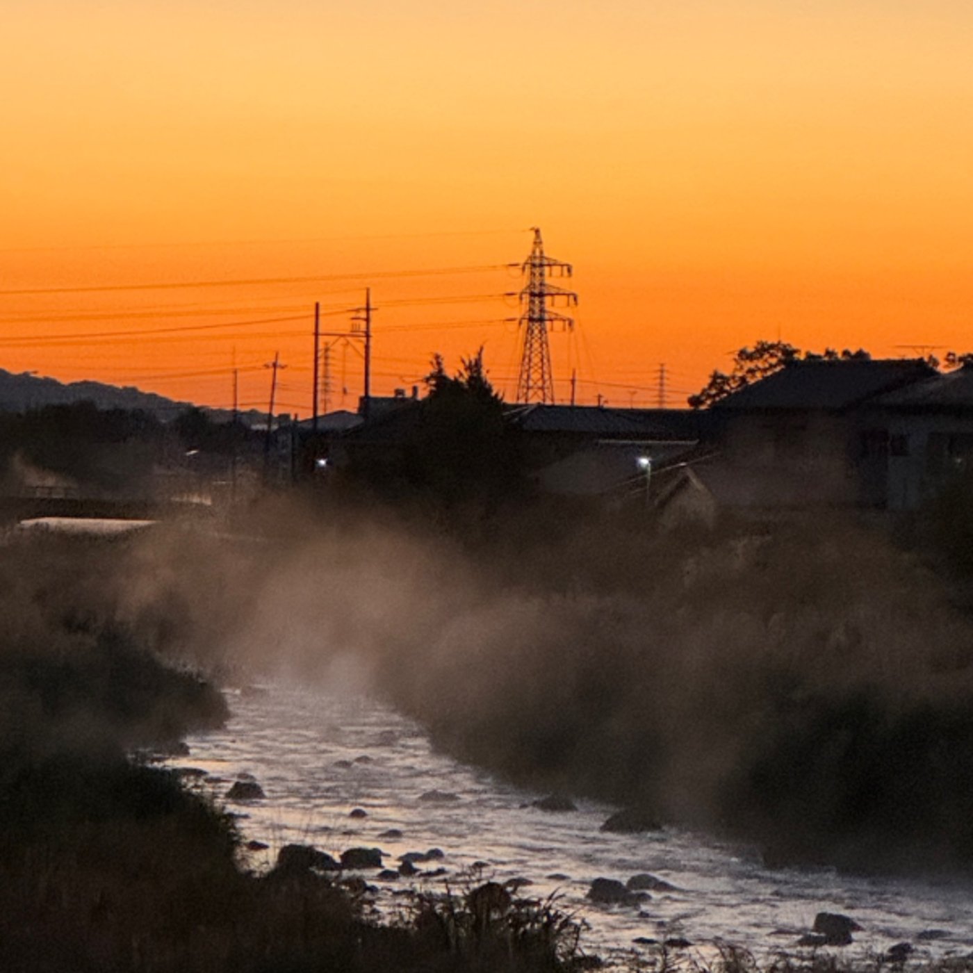 ウォーキングしている川沿い、 その景色です。