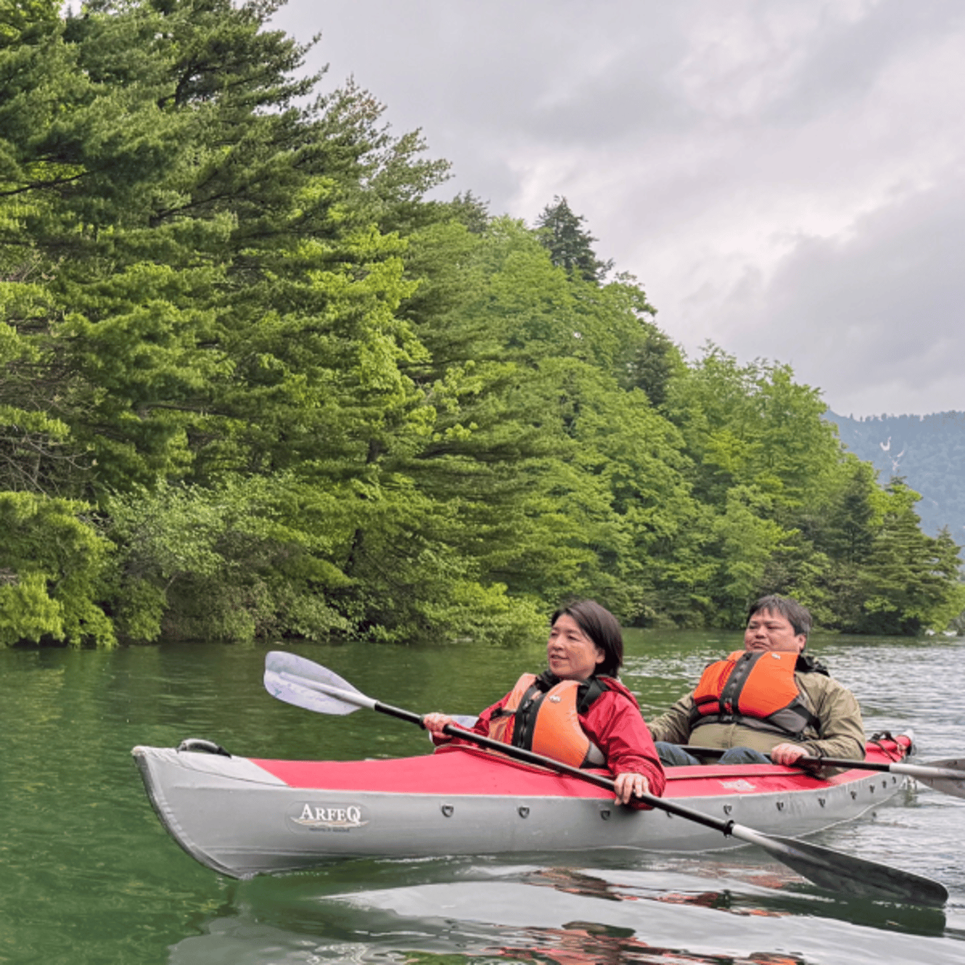 前日にはね、草津温泉に泊まって、そして、うちの春のツアーをね、メインに楽しみ、二人とも初挑戦、初カヌー。