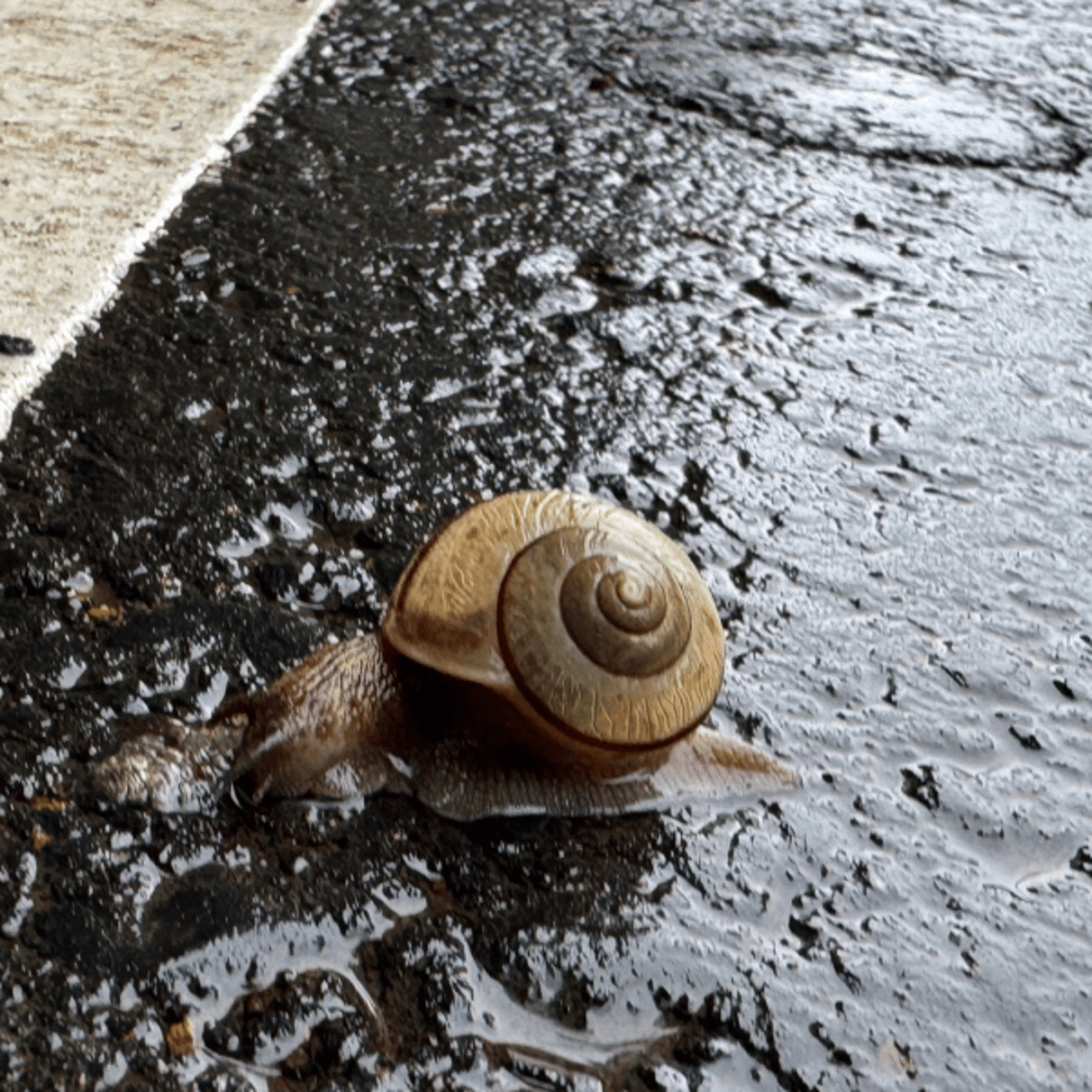 何はともあれ、このかたつむり、道端にいました。