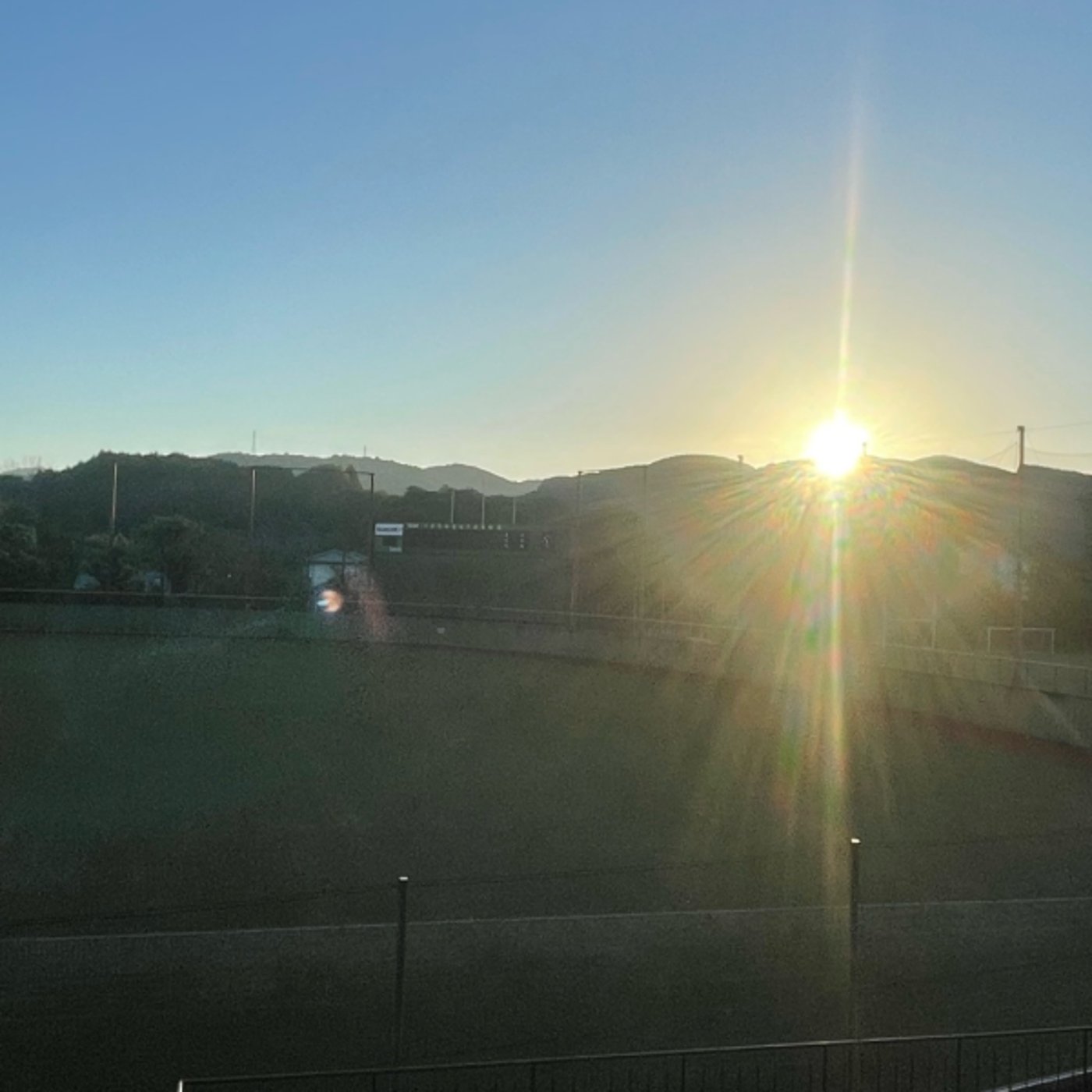 背景の画像はその野球場からね、見せたらちょうど朝日が上がってきたので、先ほど写真に収めてみました。