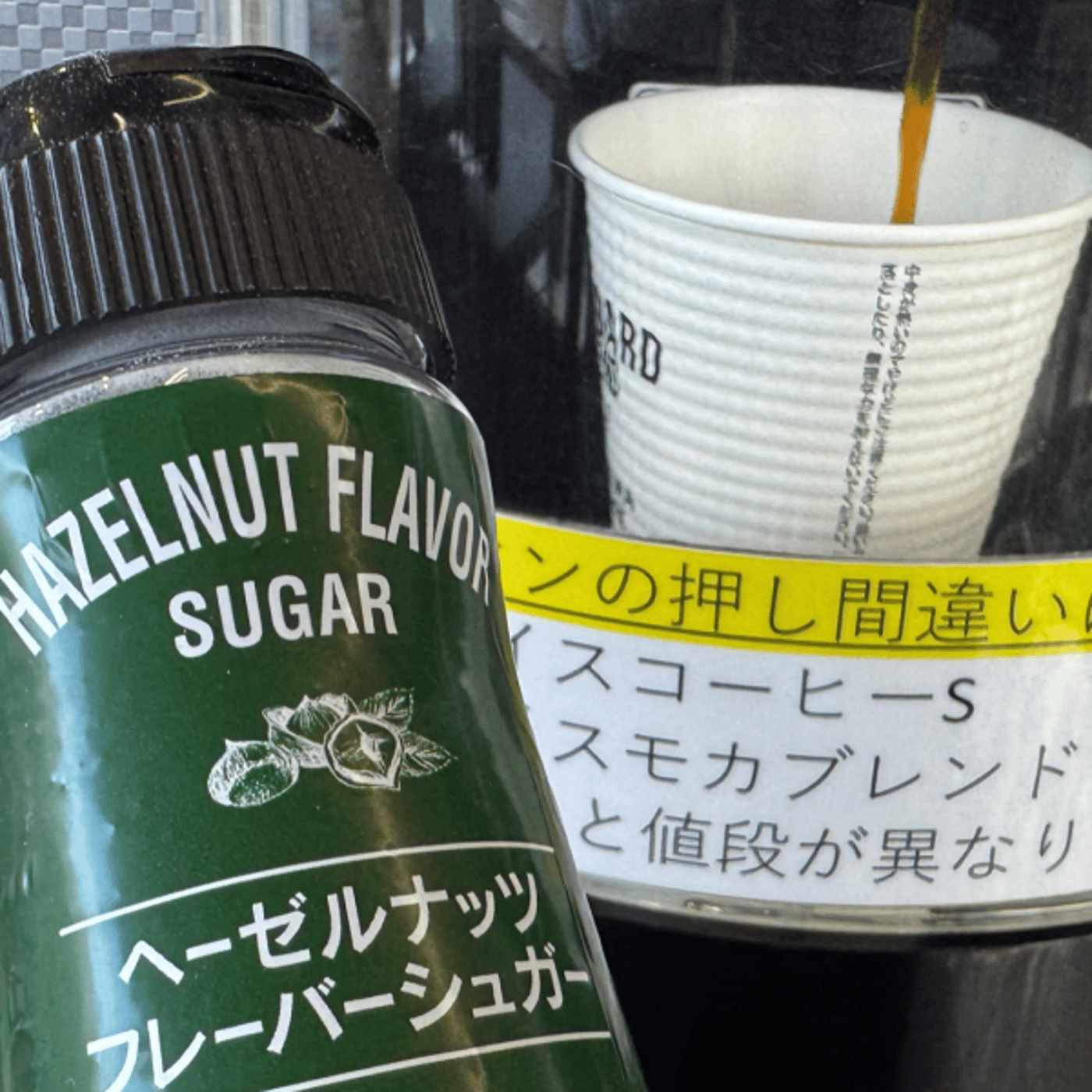 ヘーゼラー、ヘーゼルナッツのパウダーをコーヒーにかけるとおいしいよって聞いていて。
