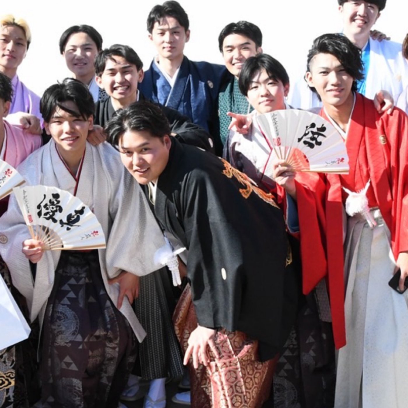 みんなして羽織袴着ていたところ