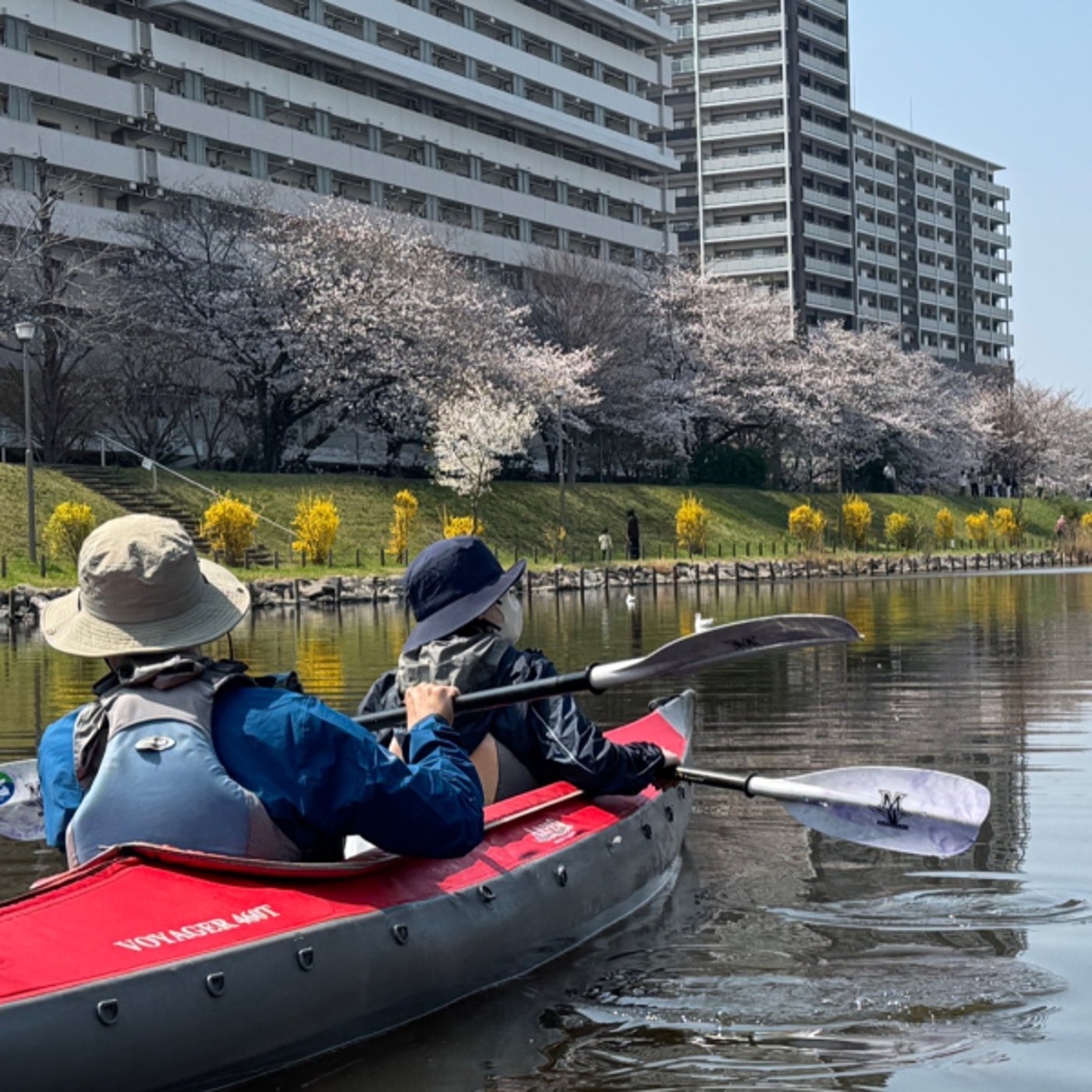 お花見カヌー体験の様子