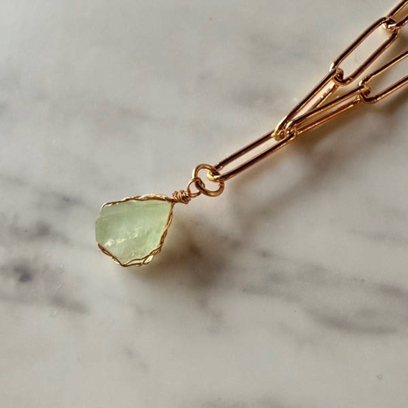 出来上がったそのね、なんちゃって宝石になったホタル石をですね、ちょっと初めて手芸な感じで、ワイヤーラッピング的なことを、初心者ですがやってみてですね、ちょっとアクセサリーを作ってみました。