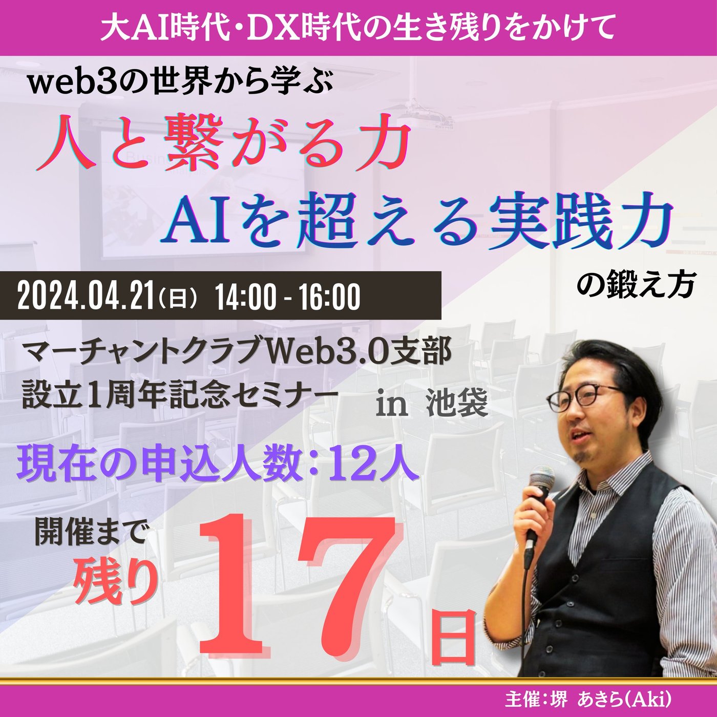 4月21日日曜日14時から東京池袋にてweb3、あとはAIに関するセミナーを開催予定となっております。