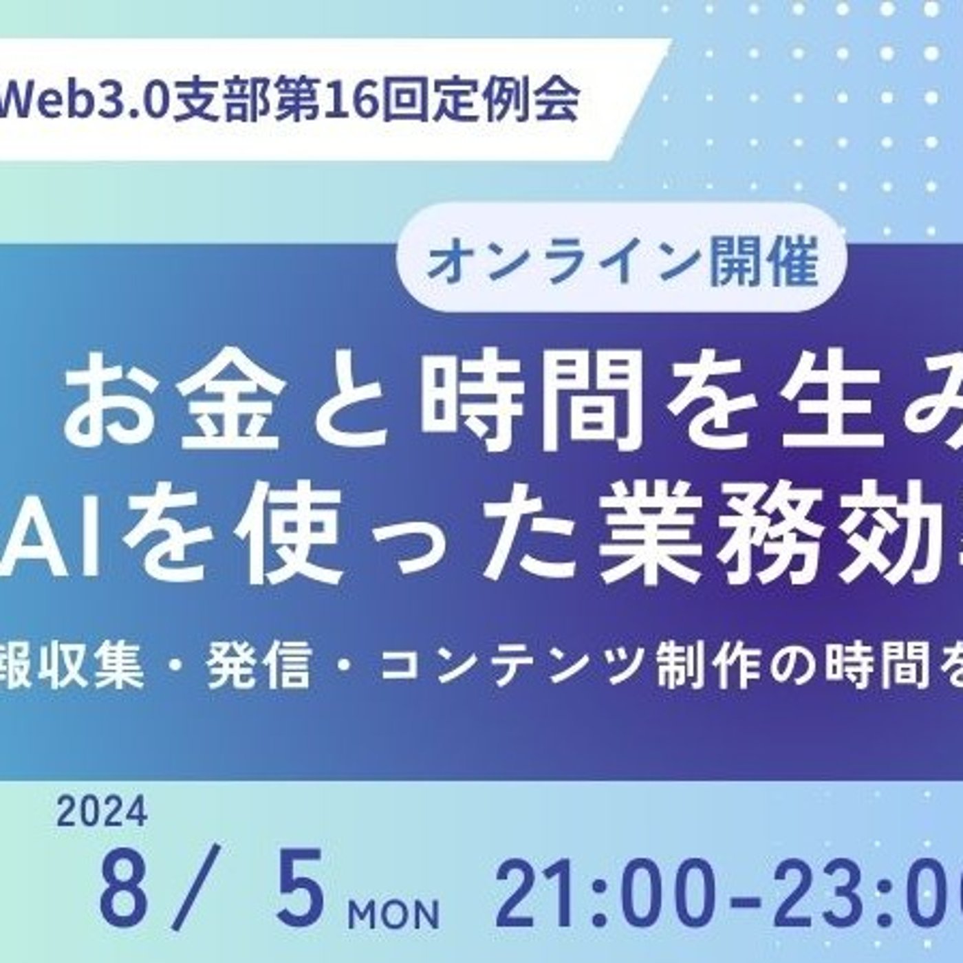 僕が主催を務めておりますWeb3 AIコミュニティがあったりするんですけど、その中で開催をさせていただく予定となっております。