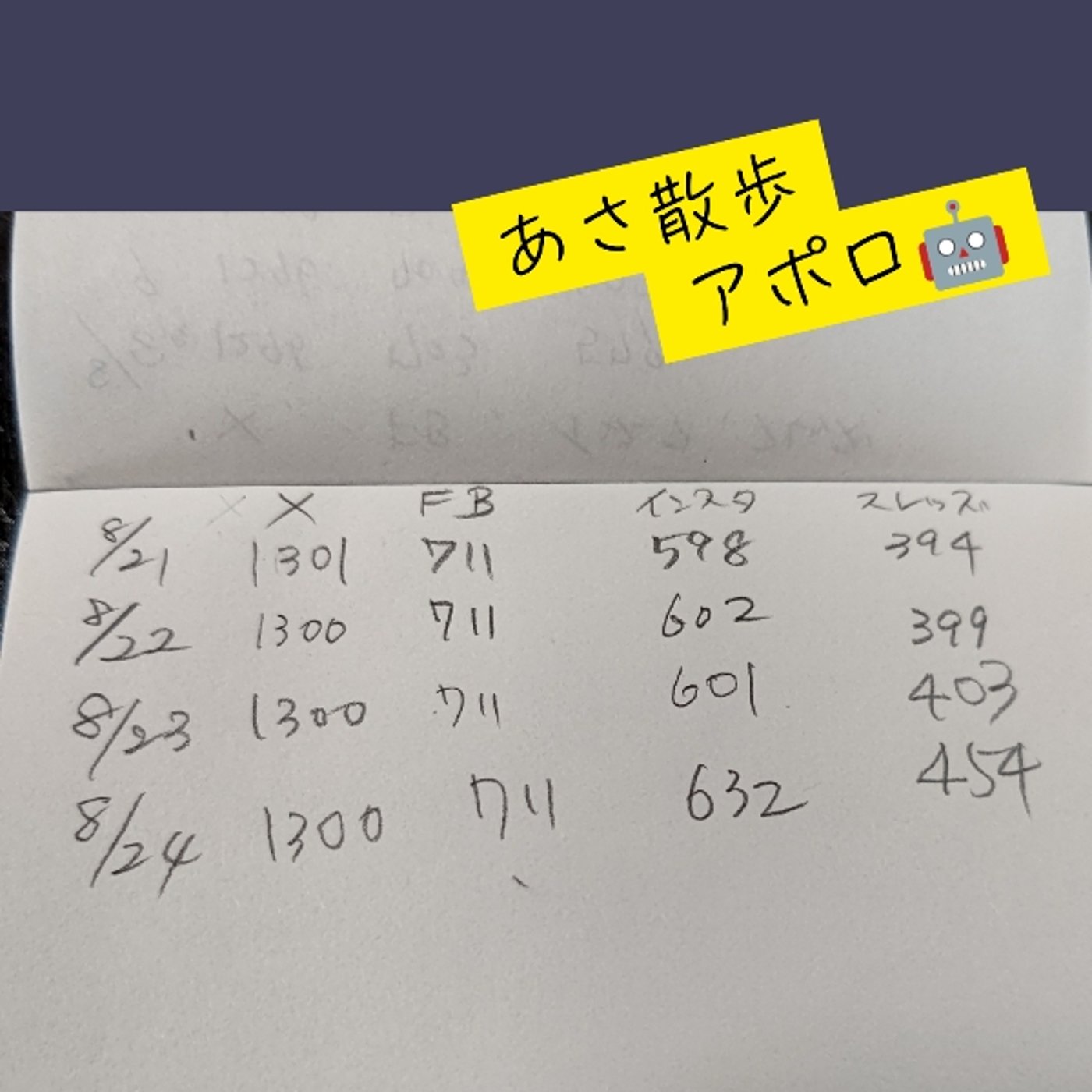 8月8日から記録を取り始めたんですけど、それぞれのXとインスタとスレッツの伸びが全然違うということを、今日数字でお伝えしようと思います。