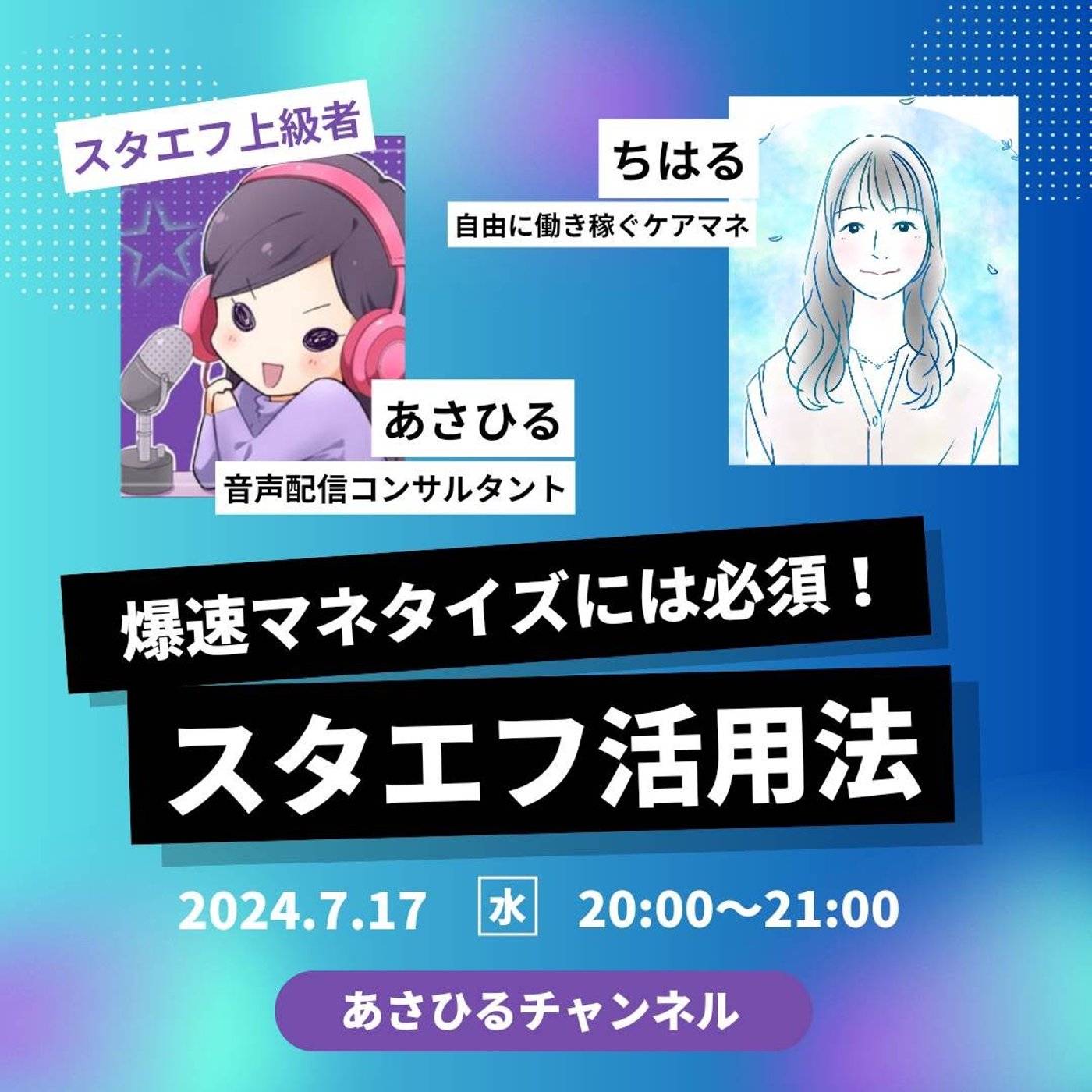 まず、今夜7月17日の水曜日夜20時から、自由に働くケアマネの千春さんとコラボライブという形で、