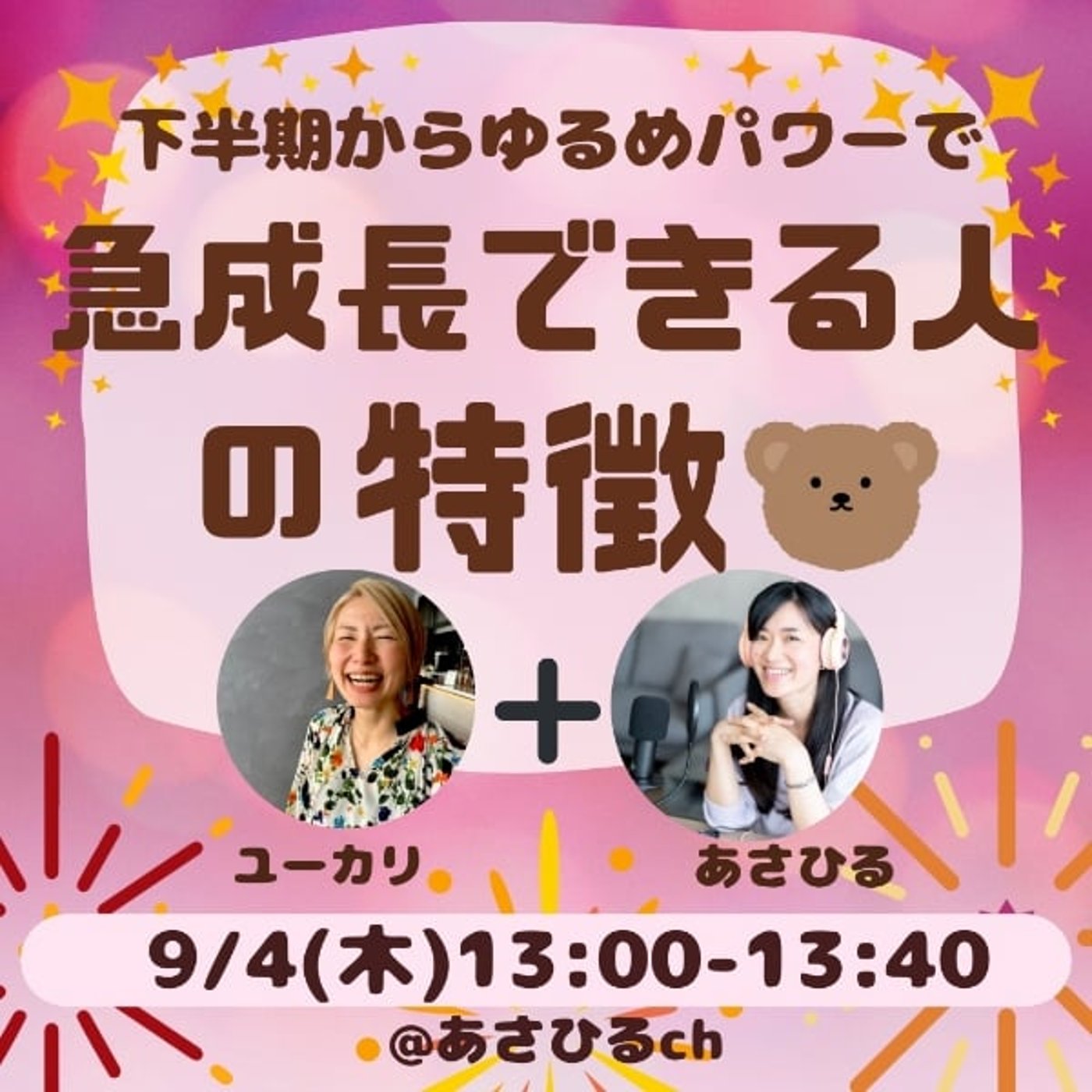 申し込んでこられたご自身を褒めてあげてください。そして誰よりも多分クマさんが当日を褒め褒めしてくれますのでっていう。