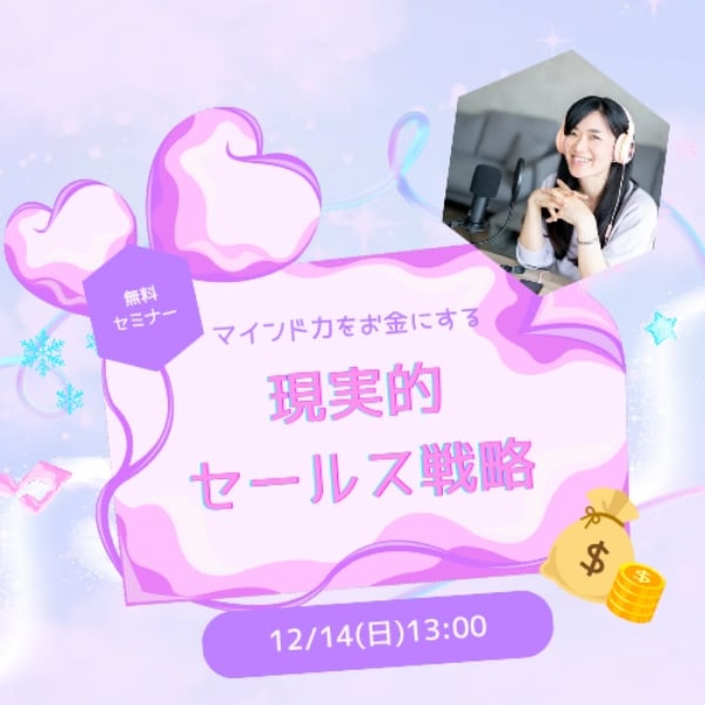 12月14日の日曜日13時からですね、マインド力をお金にする現実的セールス戦略ということで、