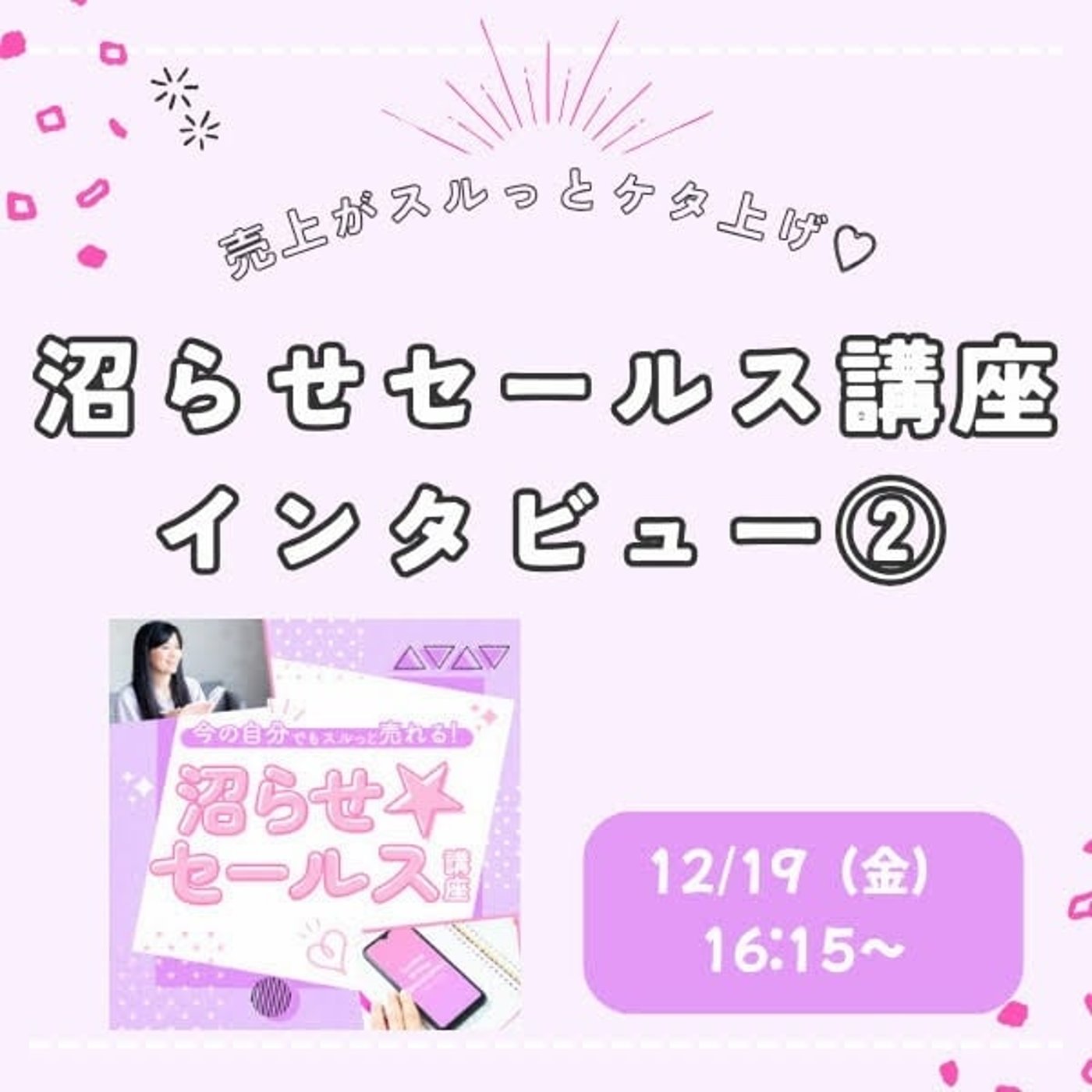 こちらのタイトルは、売上がスルっとケタ上げ♡沼らせセールス講座インタビューライブ②ということで、