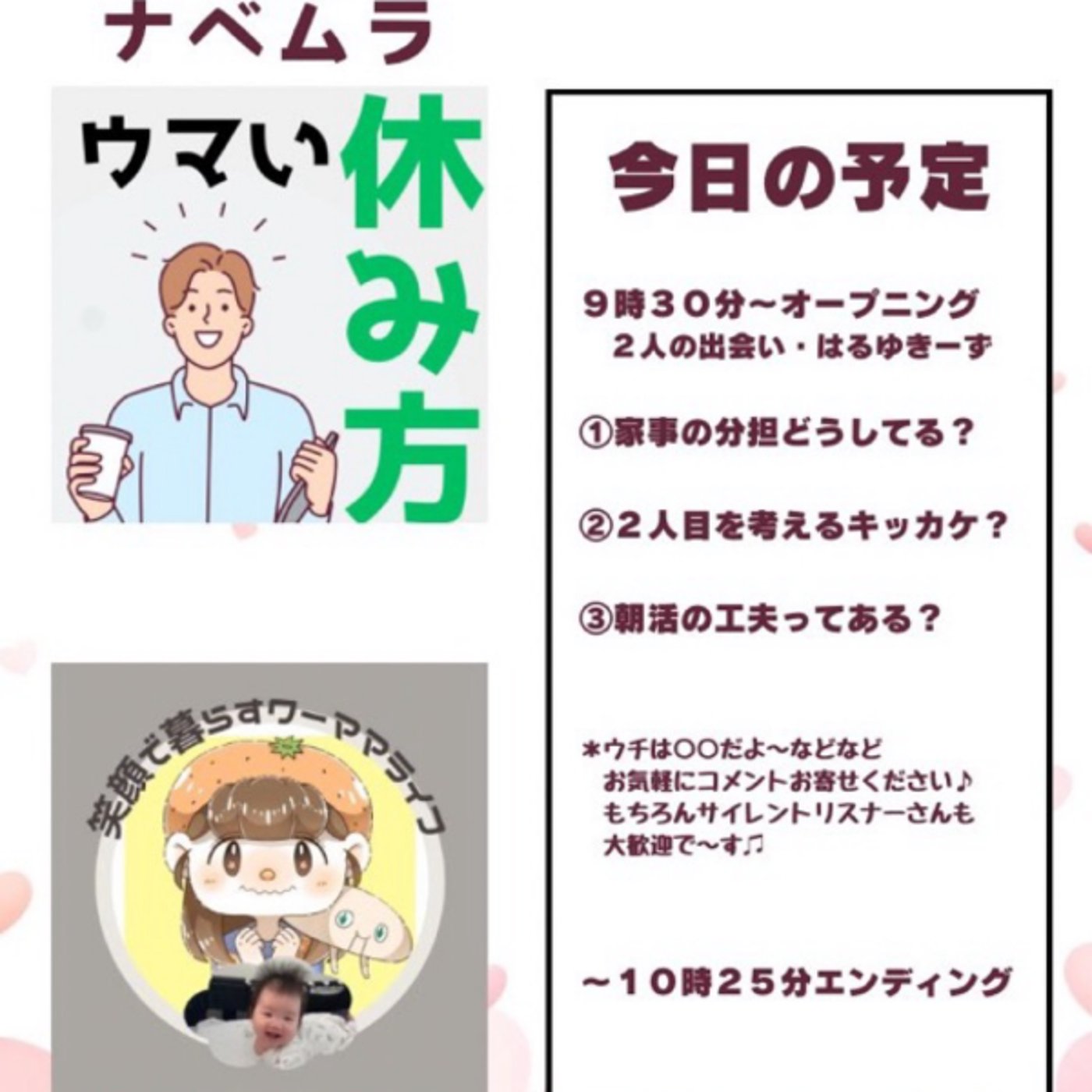 【コラボ生放送】ナベムラさんとbellが子育てについてワイガヤ話すライブ☺️