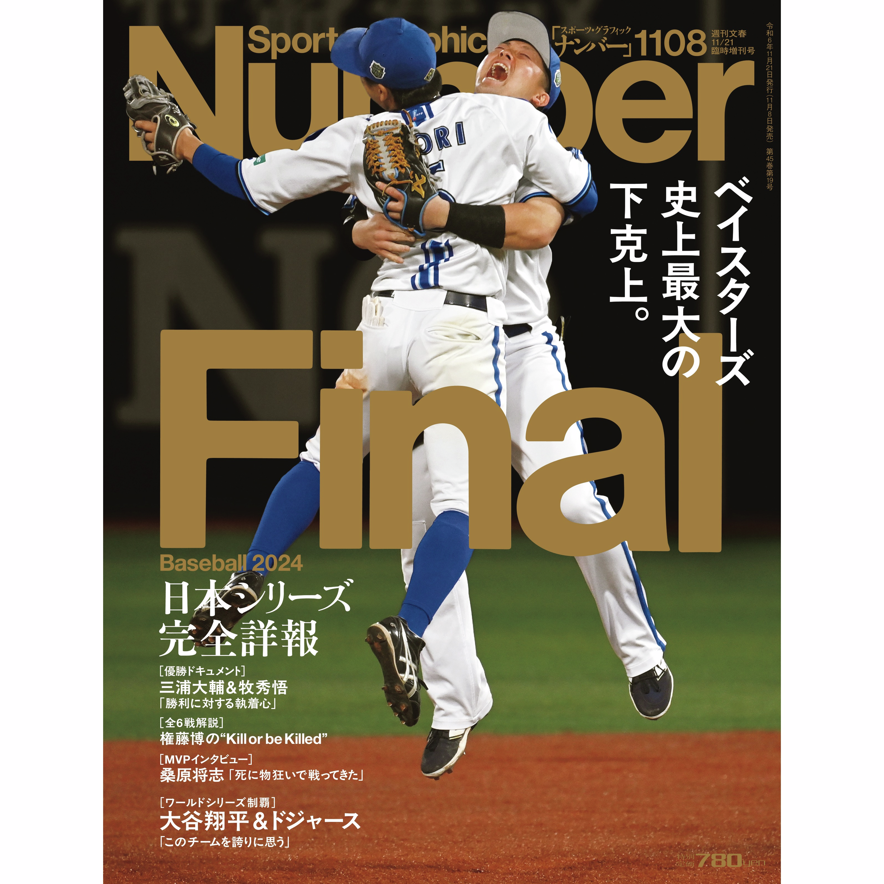 優勝の瞬間、佐貫直哉カメラマンが捉えたこの一瞬。26年前に横浜が日本一になった時の表紙と被るものになりました。この一枚の裏側には、「牧は何かをするに違いない…! 牧をねらえ!」という田村デスクの采配があったのでした。