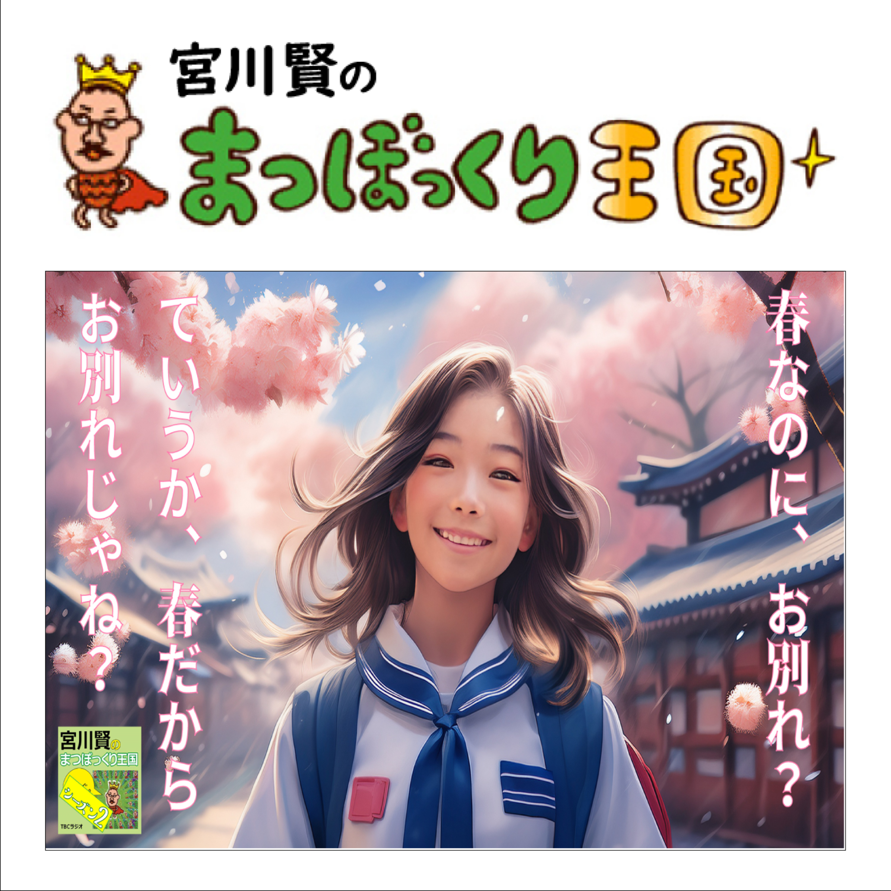 TBCラジオ「宮川賢のまつぼっくり王国」2025年3月31日放送分のアーカイブです。出演■宮川賢、ディレクター■宮川賢、プロデューサー■宮川賢、テーマ曲、ジングル他作曲■宮川賢