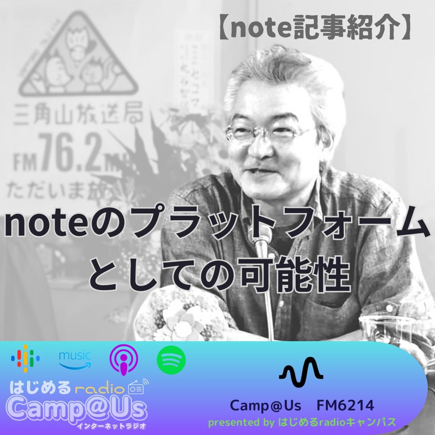 オンラインサロン「はじめるnoteキャンパス」の可能性をひろげ、情報発信にふくらみをもたせようと、はじめるradioキャンパス、Camp@Us FM6214の2つの番組のPodcast配信をはじめました。