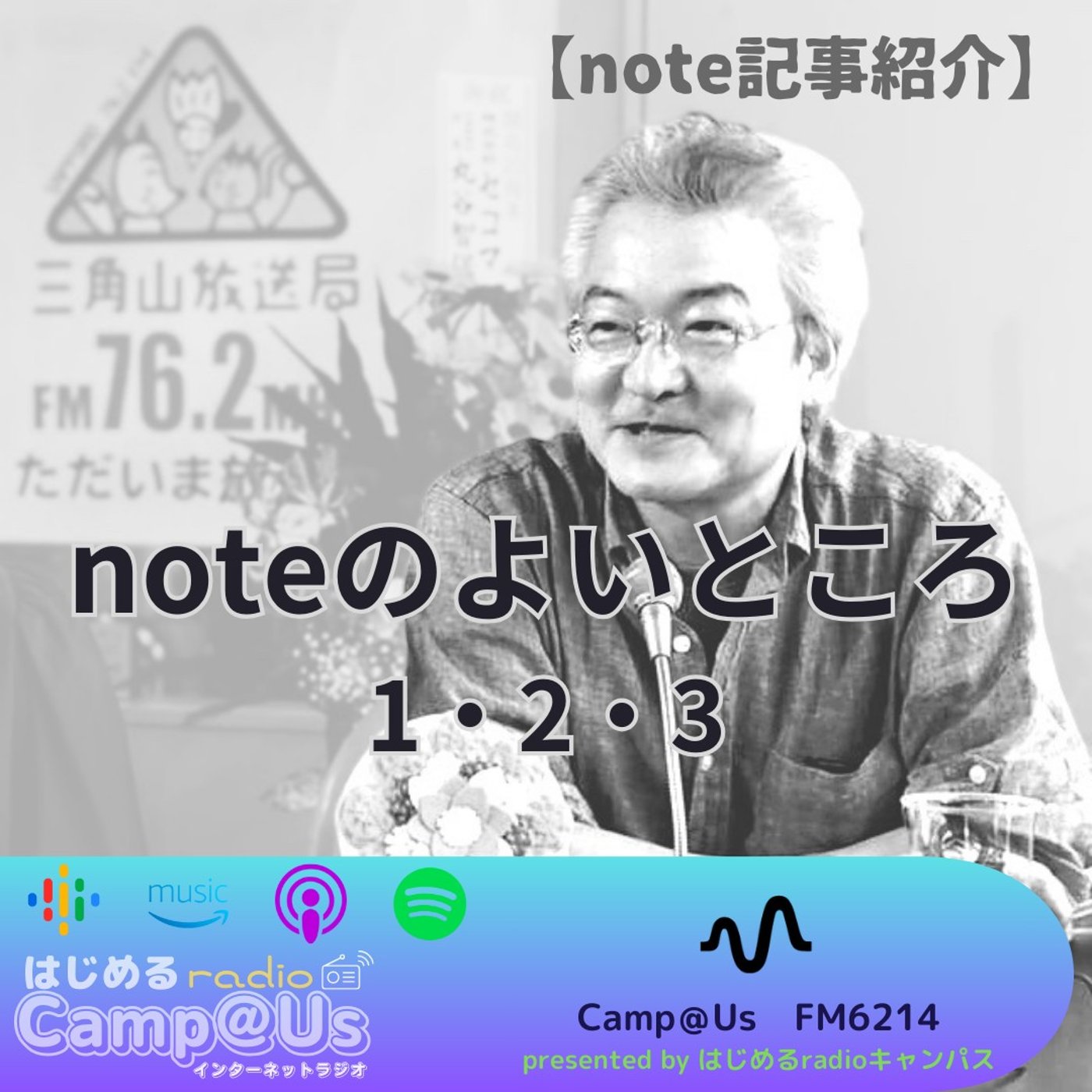 オンラインサロン「はじめるnoteキャンパス」の可能性をひろげ、情報発信にふくらみをもたせようと、はじめるradioキャンパス、Camp@Us FM6214の2つの番組のPodcast配信をはじめました。