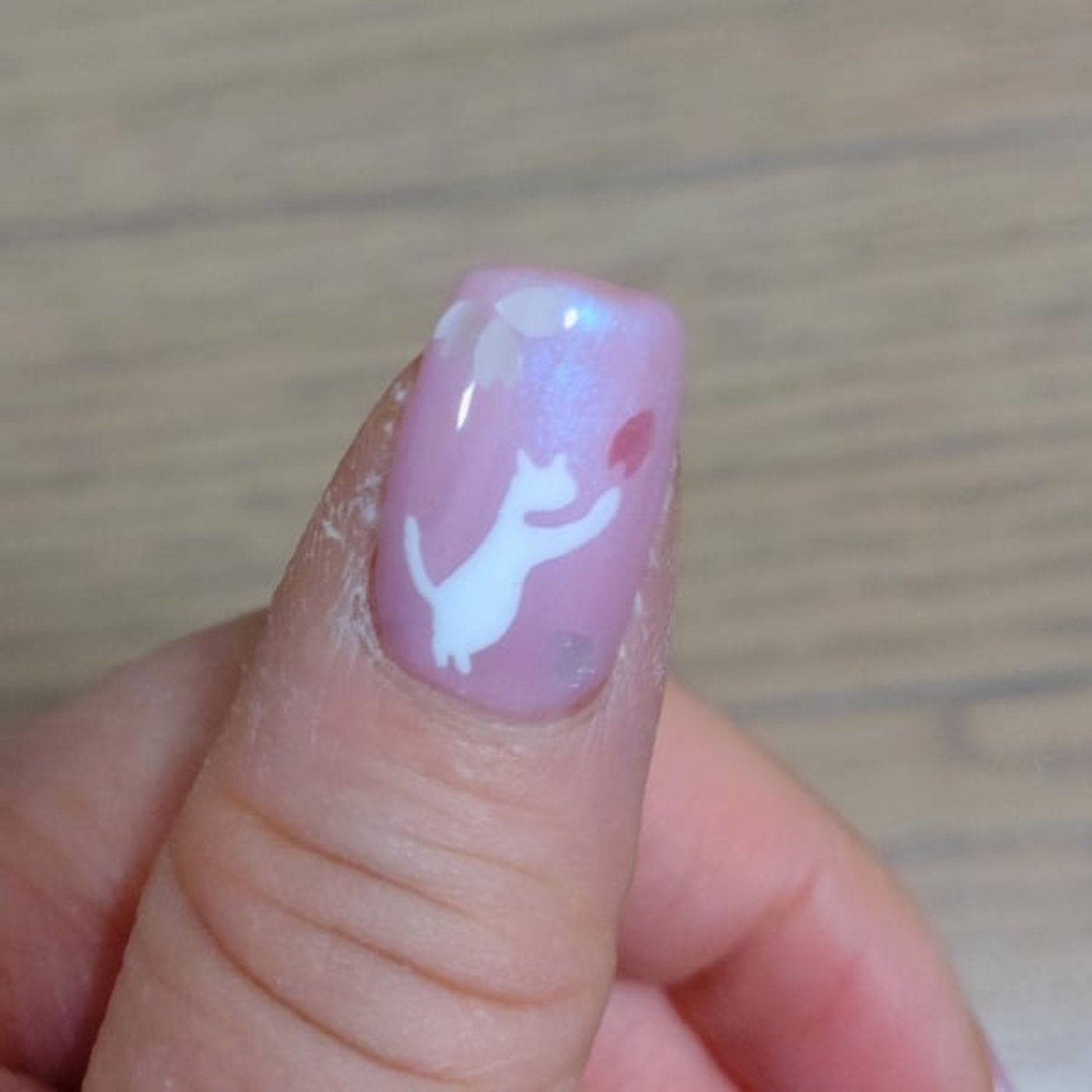 春バージョンって感じでね、猫が桜と戯れているっていうような感じのネイルに今日ちょっとしてもらってね、