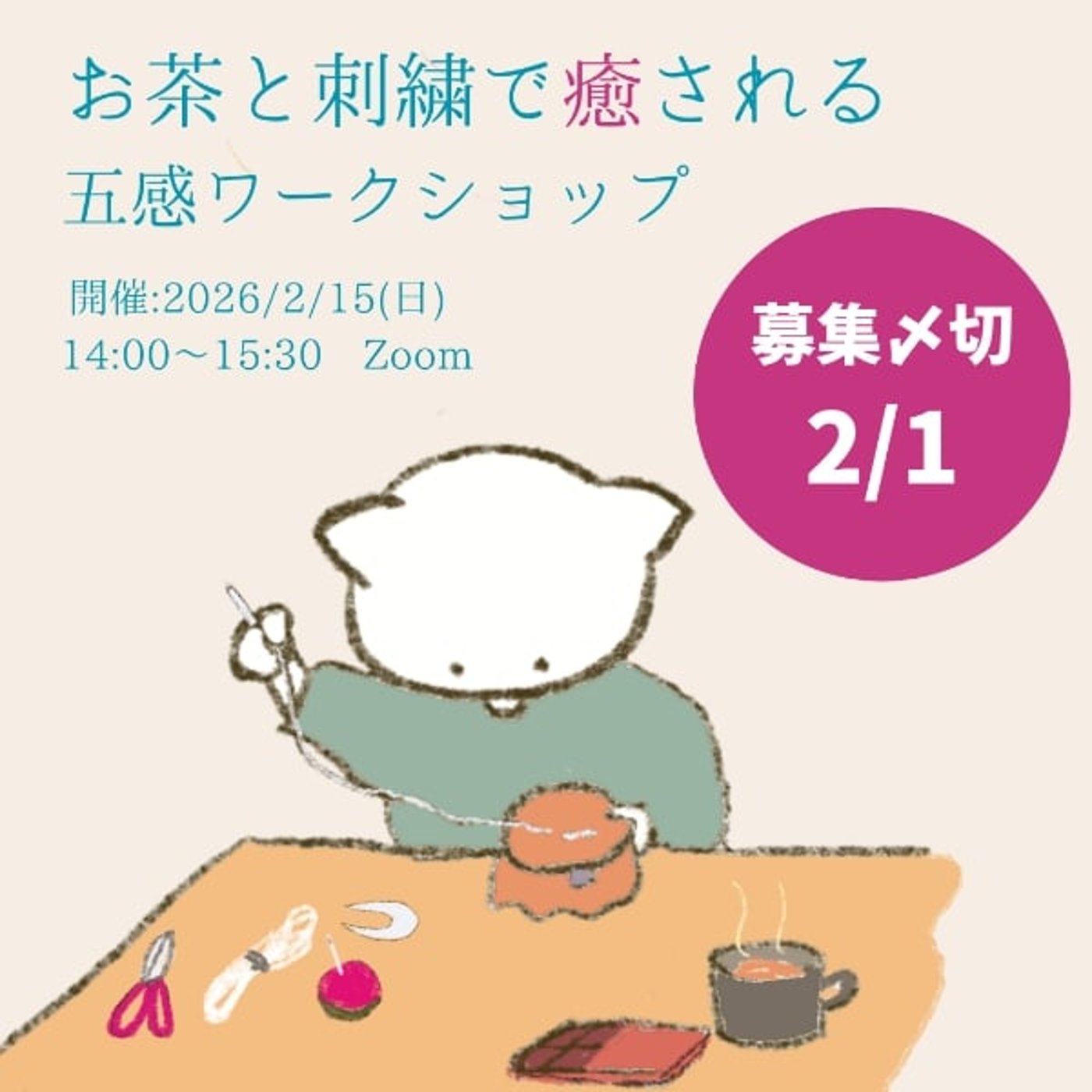 でもなんかその今回のワークショップって、股間を使うっていうことで、その針を実際に手に持って自分で縫うとかね、縫うっていうか自分で刺繍するとか、お茶とかコーヒー、お茶コーヒーじゃない、お茶とかチョコとかをなんかこう、実際に手に持って味わうとかね、そういうねデジタルじゃなくて、
