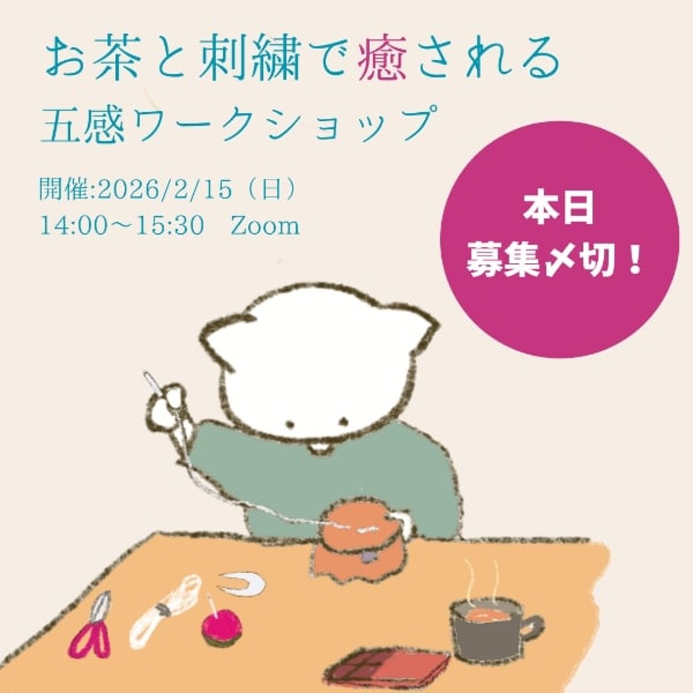 どうなるかは分からないと思うけど、しばらくははなちゃんからこういう風にビギナーの癒しの刺繍のワークショップっていうのはしばらくは開催できないんじゃないかなっていう気がしていて、