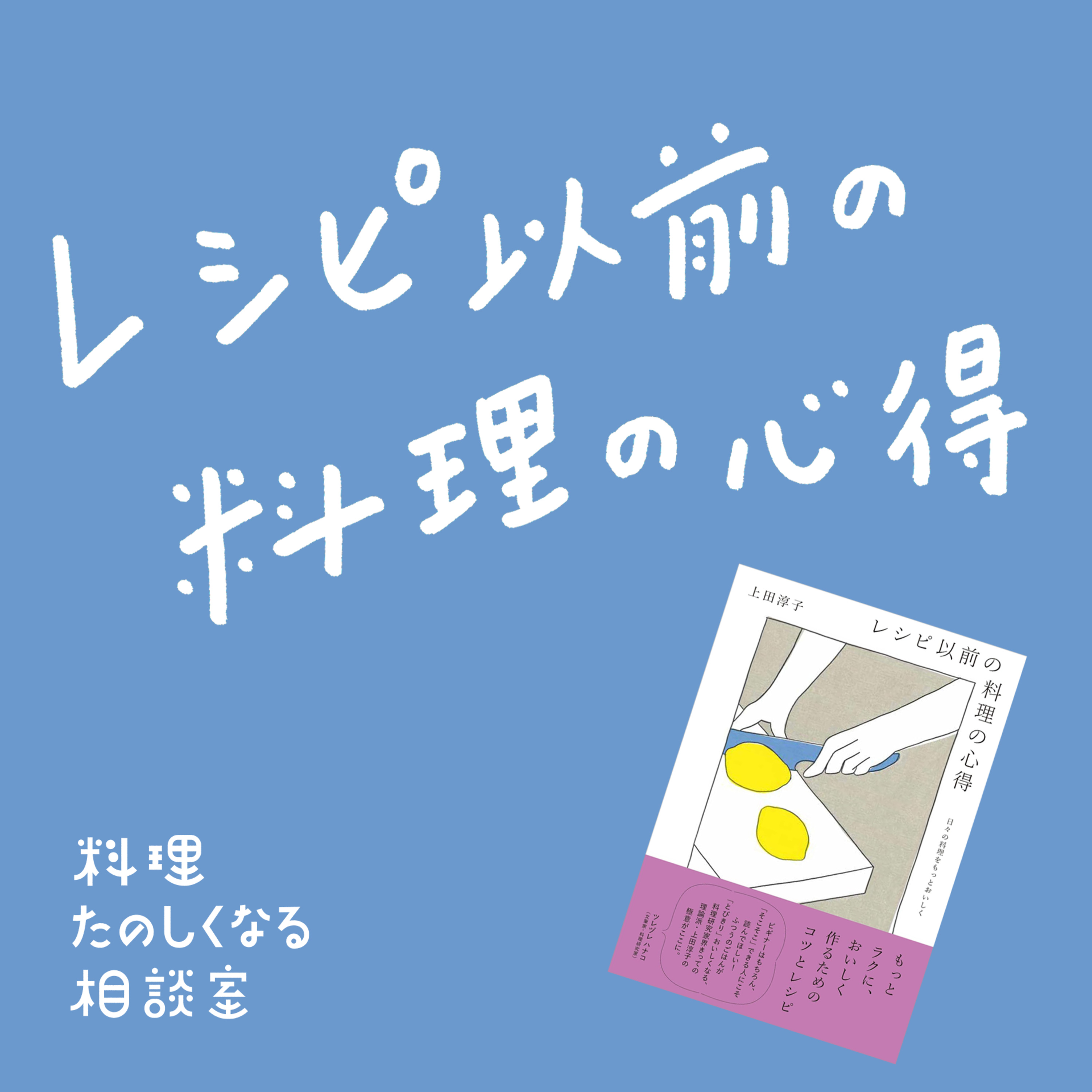 いつも出している料理本とは少し違って、このポッドキャスト「料理たのしくなる相談室」の内容ともシンクロする、知っておくと料理がもっとおもしろく楽しくなる「心得」がたくさんつまった書籍です。どんな内容なのかな〜?と気になった方にぜひ聴いていただきたい回となっております◎