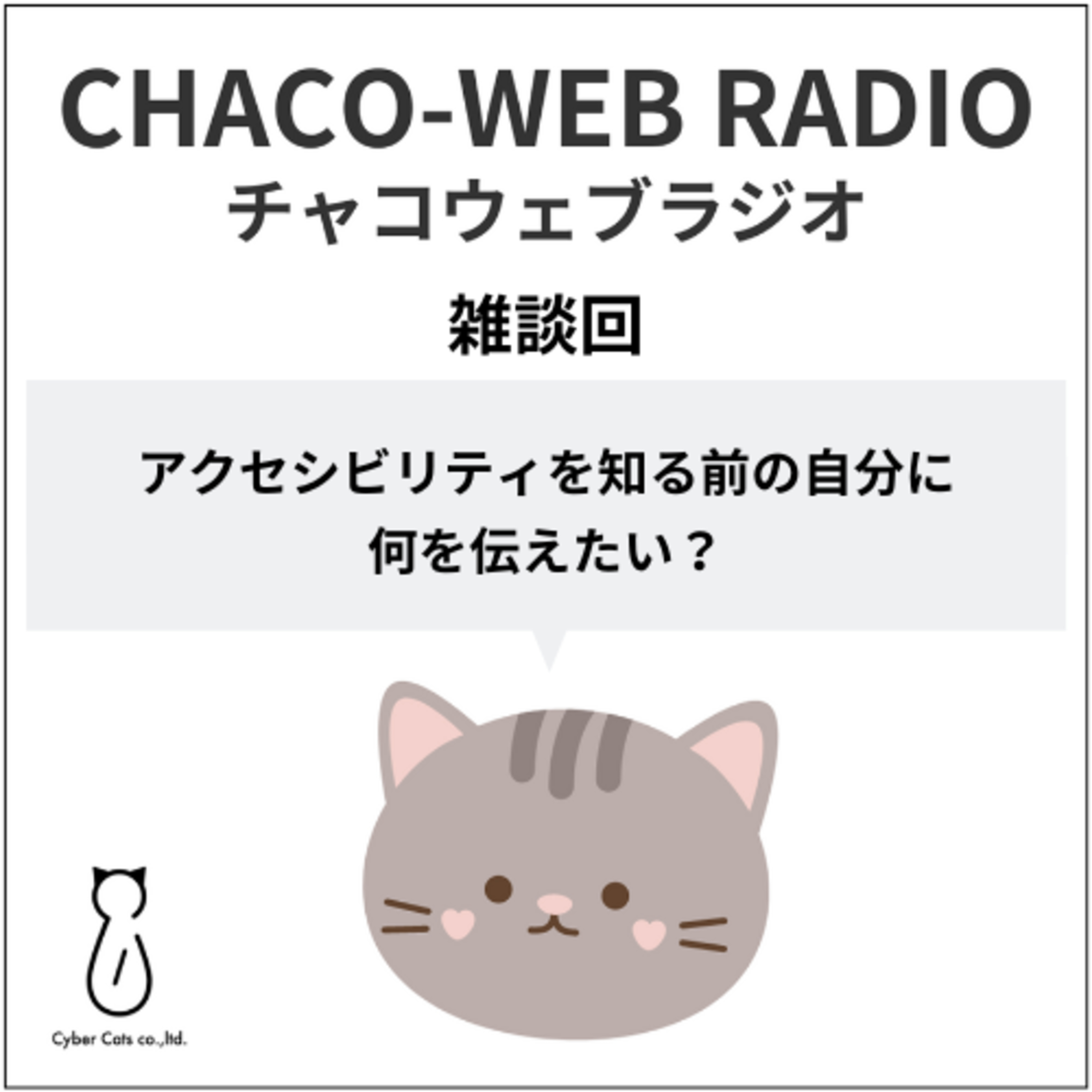 「チャコウェブラジオ」は株式会社Cyber Catsが運営するチャコウェブのスタッフが、ウェブアクセシビリティを実践したい制作者やウェブ担当者に向けて、ゆっくりじっくり解説していくポッドキャストです。