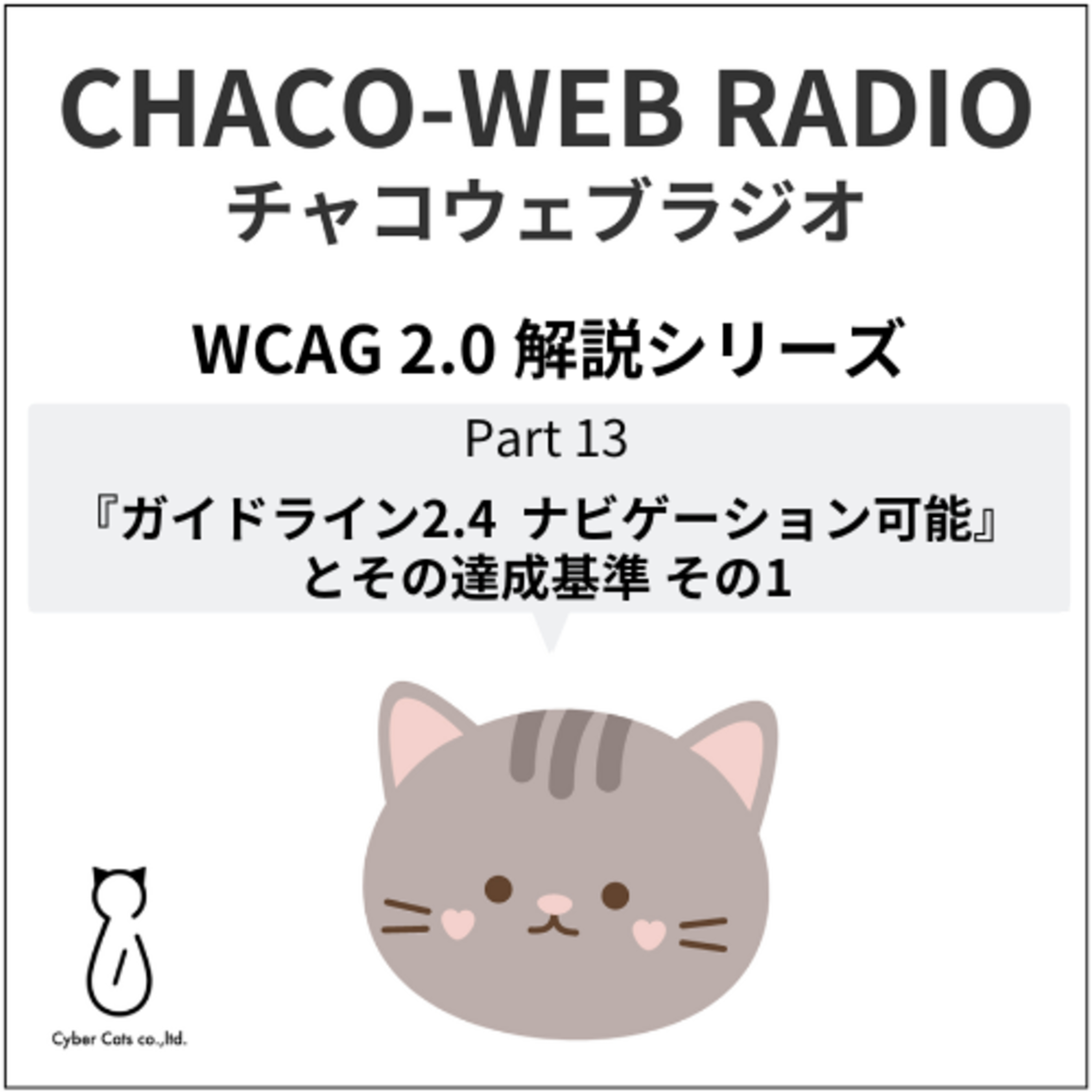 「チャコウェブラジオ」は株式会社Cyber Catsが運営するチャコウェブのスタッフが、ウェブアクセシビリティやSNS運用など、ウェブに関するテーマについて楽しくお話しするポッドキャストです。