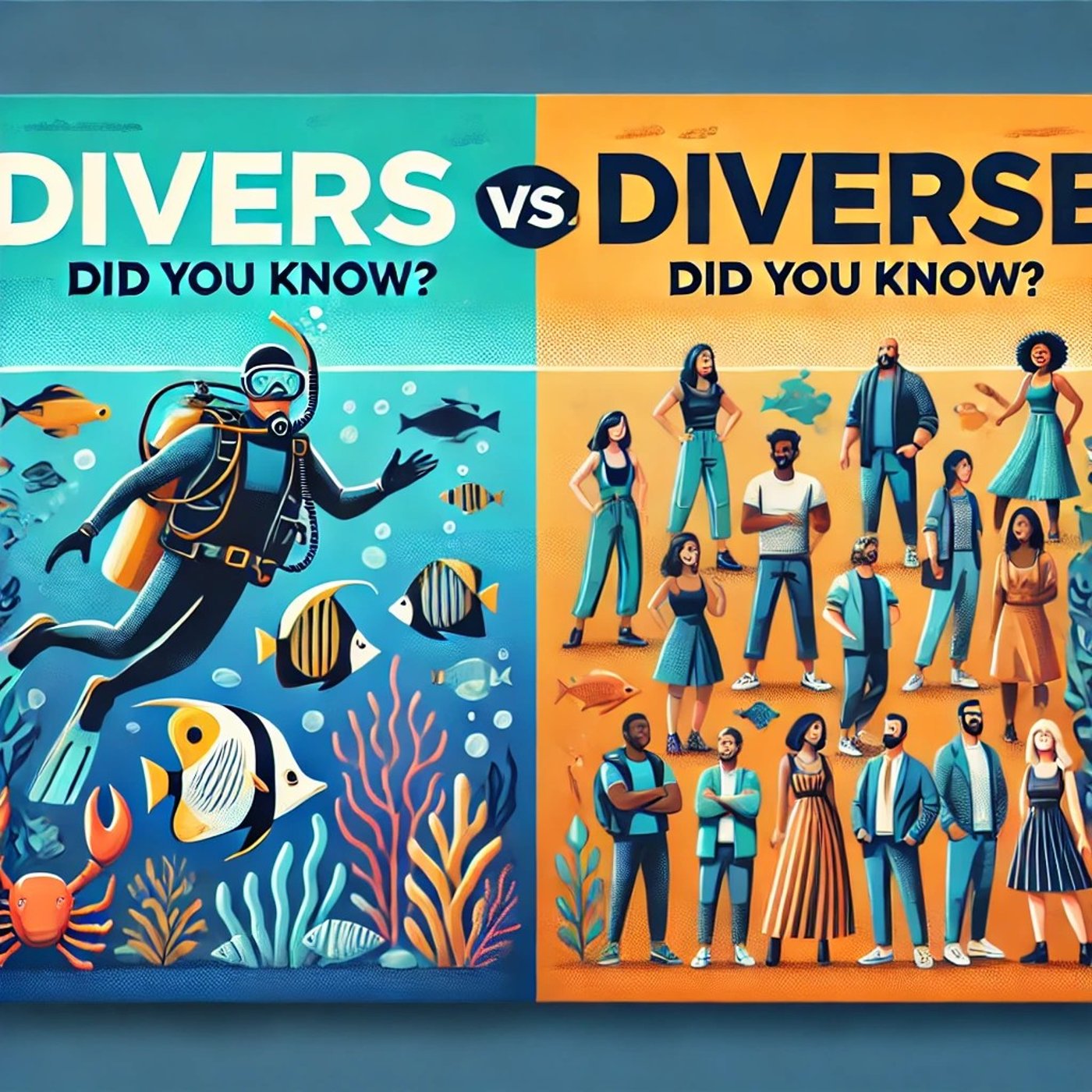 つづりも発音も同じなんでね、むしろこの発音を見たらそっちの意味で使われることの方が全く別の単語ですよね、スキューバーダイビングする人たち、こっちで使うことの方が多いんではないかと思いますが、万が一ですね、diverse、この単語を見かけてダイビングとは関係ないぞと思ったら思い出してください、いくつかのsumとかseveralぐらいで訳せばいい形容詞ということなんですね。