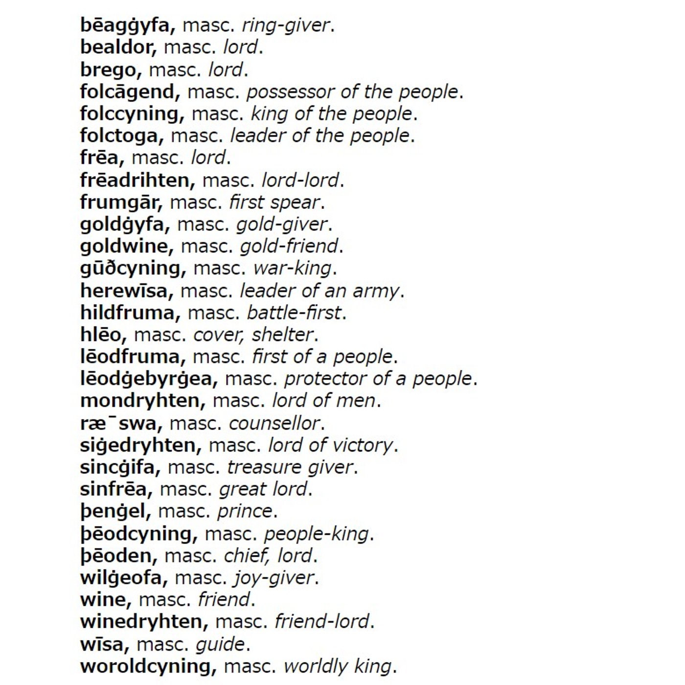 ここで、いろいろと挙げてみたいと思うんですね。 実際にこれは、ベオウルフという作品に現れた王を表すケニングなんですけれども、本当にたくさんあります。