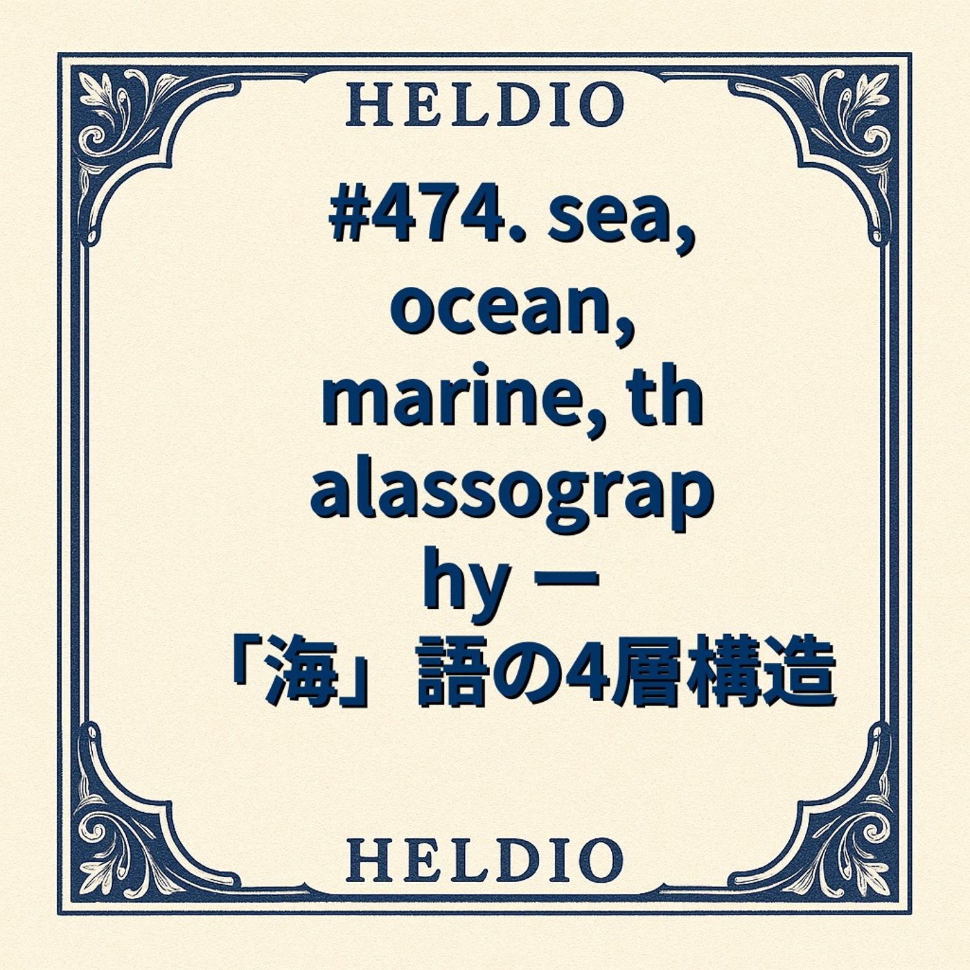 Sea, Ocean, Marine, Thalassographyのようなですね、4層構造をなしている海語の紹介でした。エンディングです。今日も最後まで放送を聞いていただきましてありがとうございました。リスナーさんからのご質問にお答えする形で、海を表す類義語の語源を考えてきました。いかがでしたでしょうか。