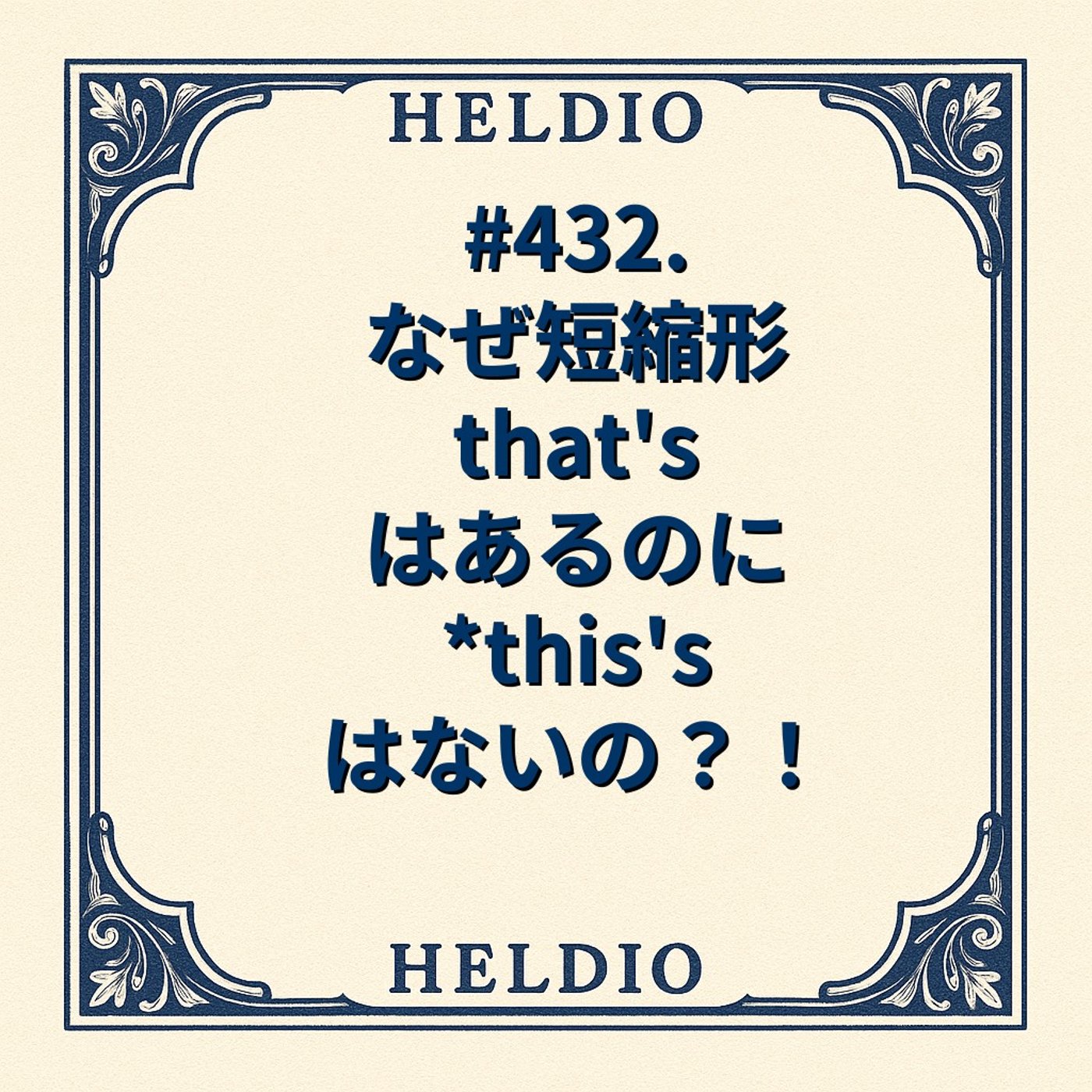 ということで今回の素朴な疑問については一つ教訓がありましてなぜ短縮形はあるのにthis isの対応する短縮形はないのという質問でした。