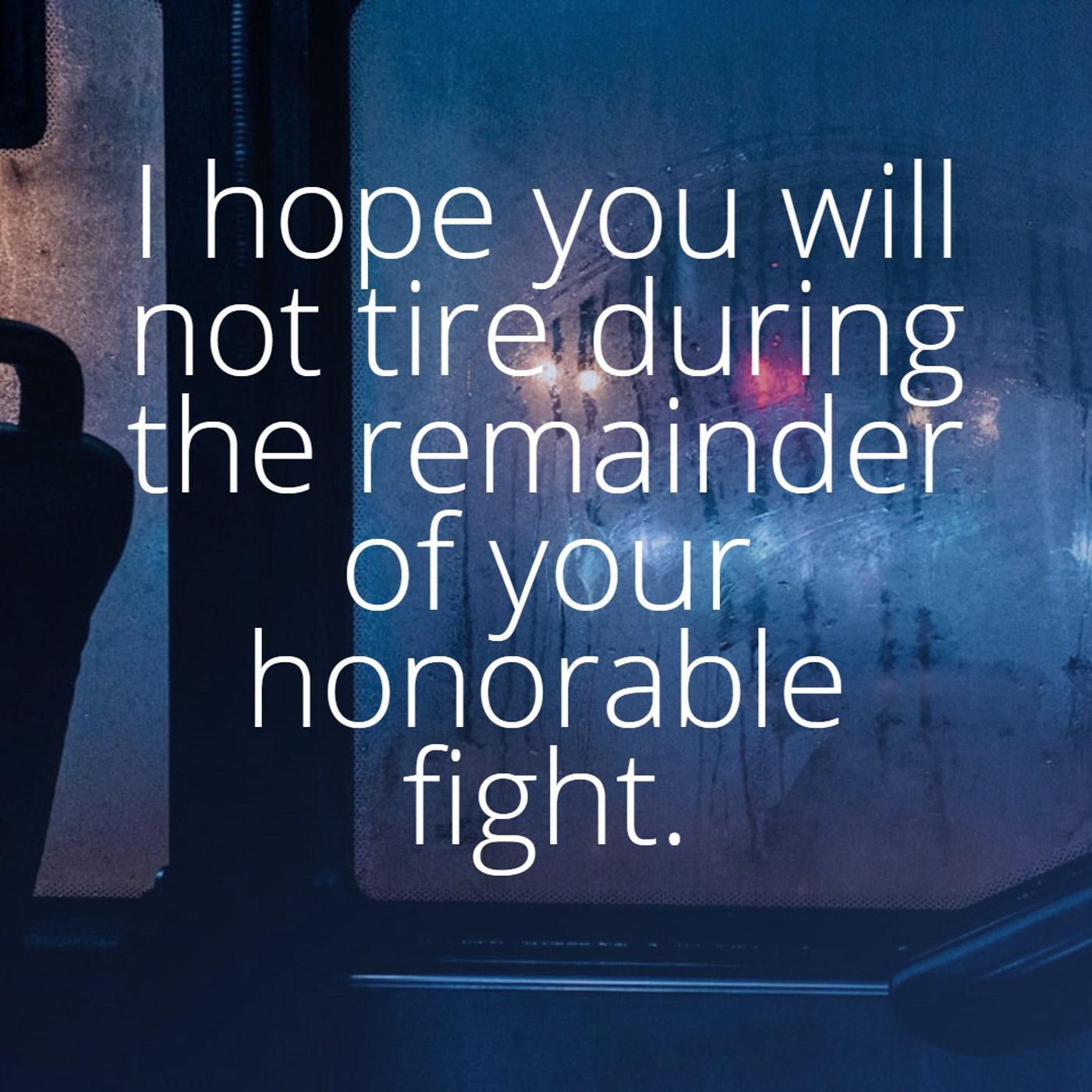 I hope you will not tire during the remainder of your honorable fight.