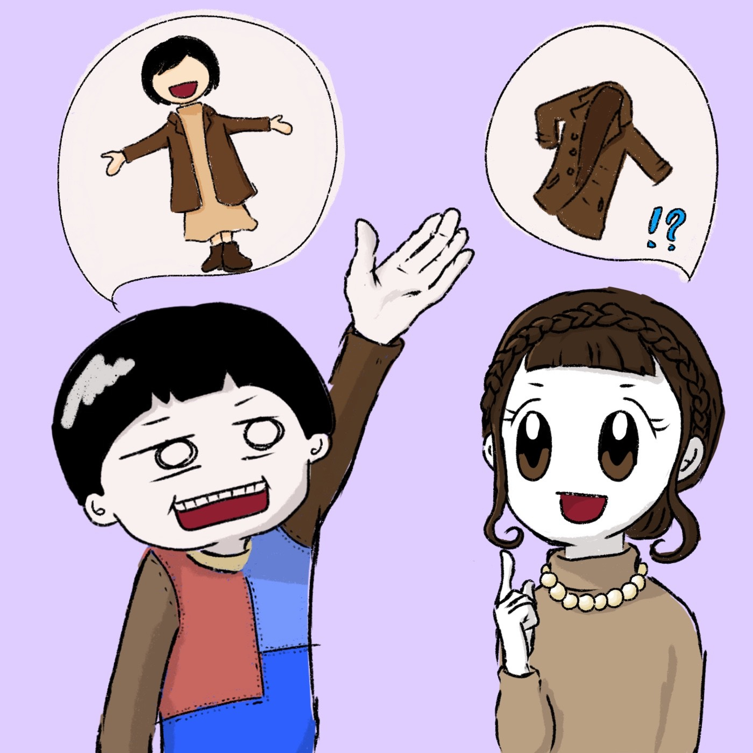この季節だったらちょっと茶色がかった厚手のね、ロングコートとか。