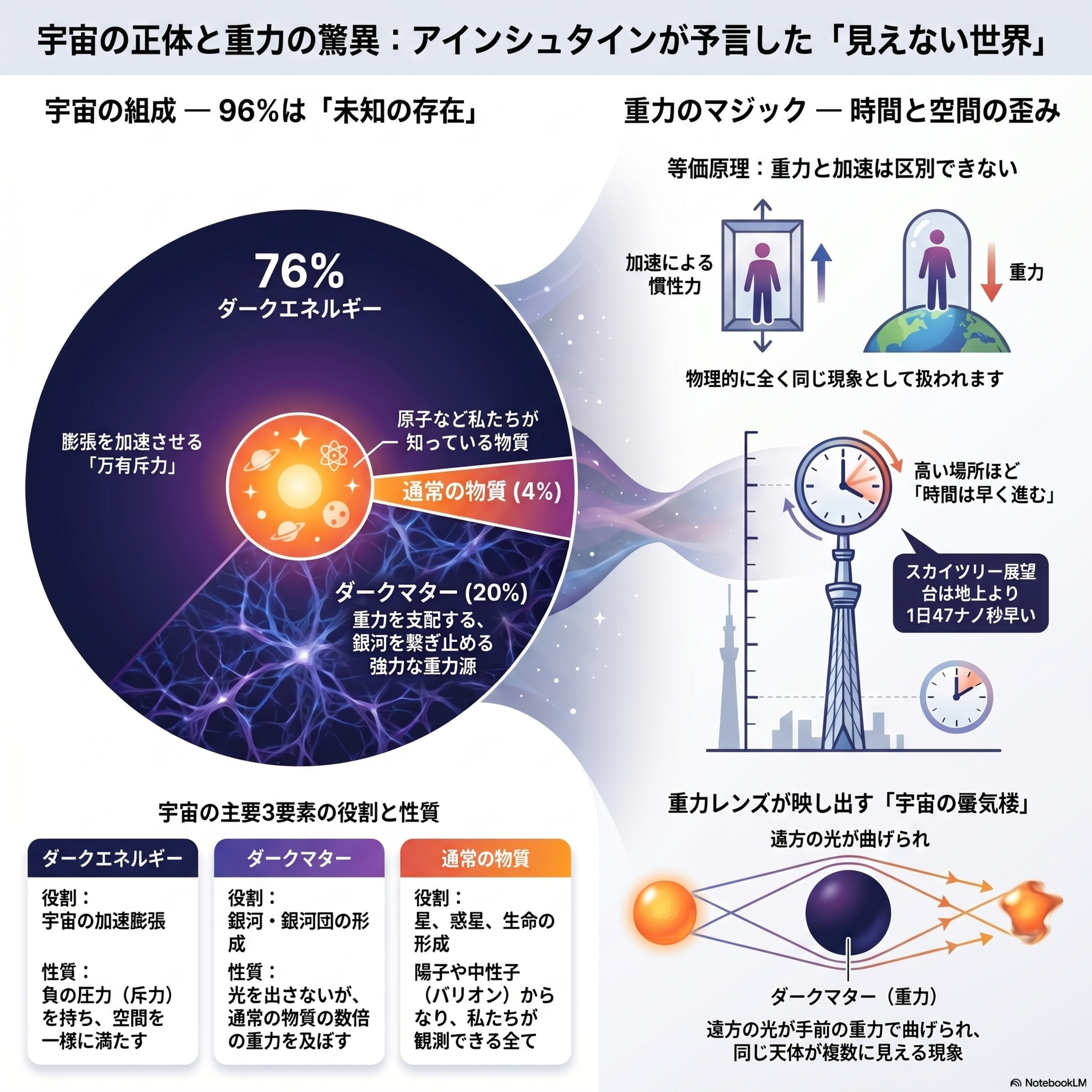 いやー、アインシュタインが頭の中で描いた理論が現代の技術によって目の前のスカイツリーで実証されているというのは非常にエキサイティングです。