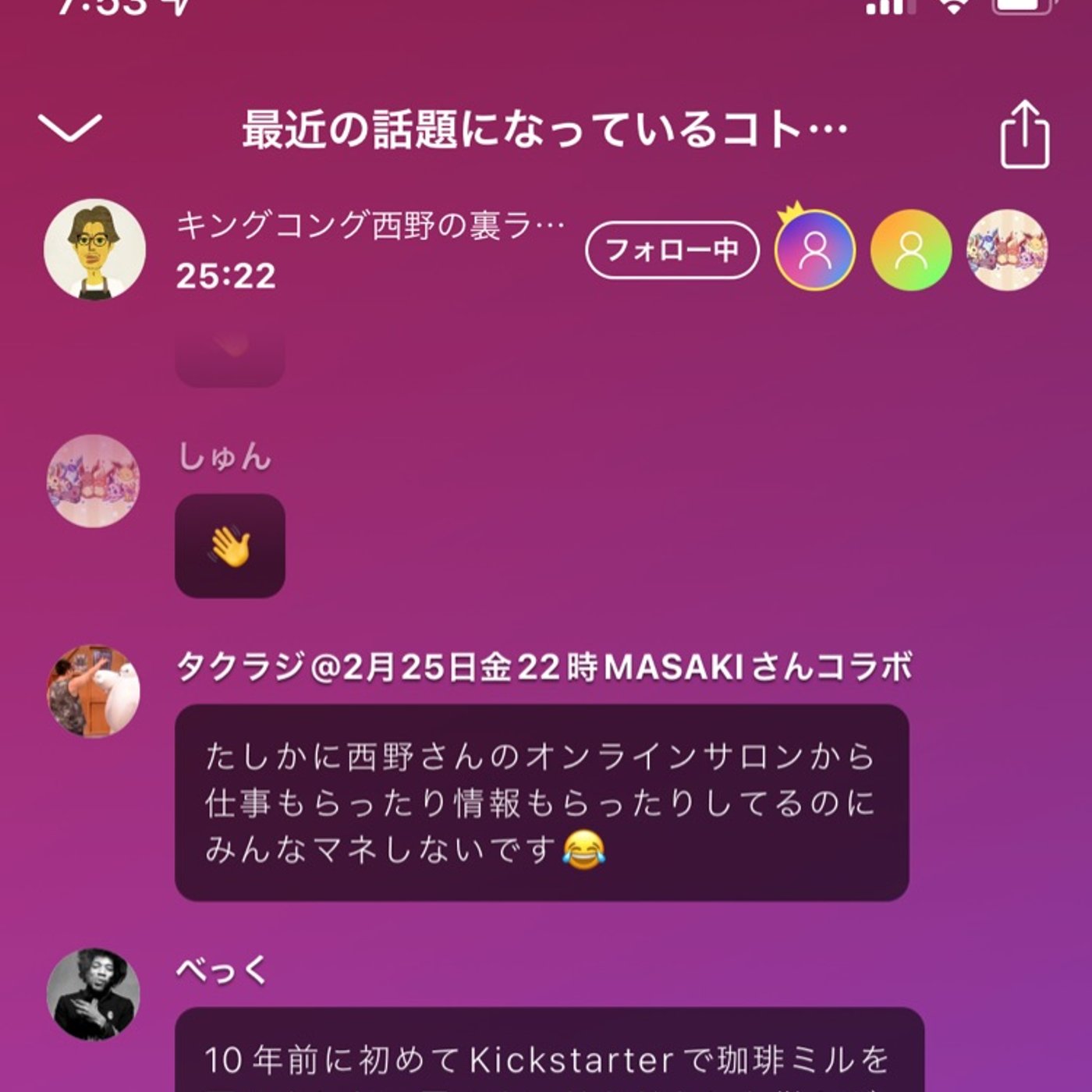 人が少なかったからか10個くらいコメント読んでもらえていろいろ教えてもらえました!