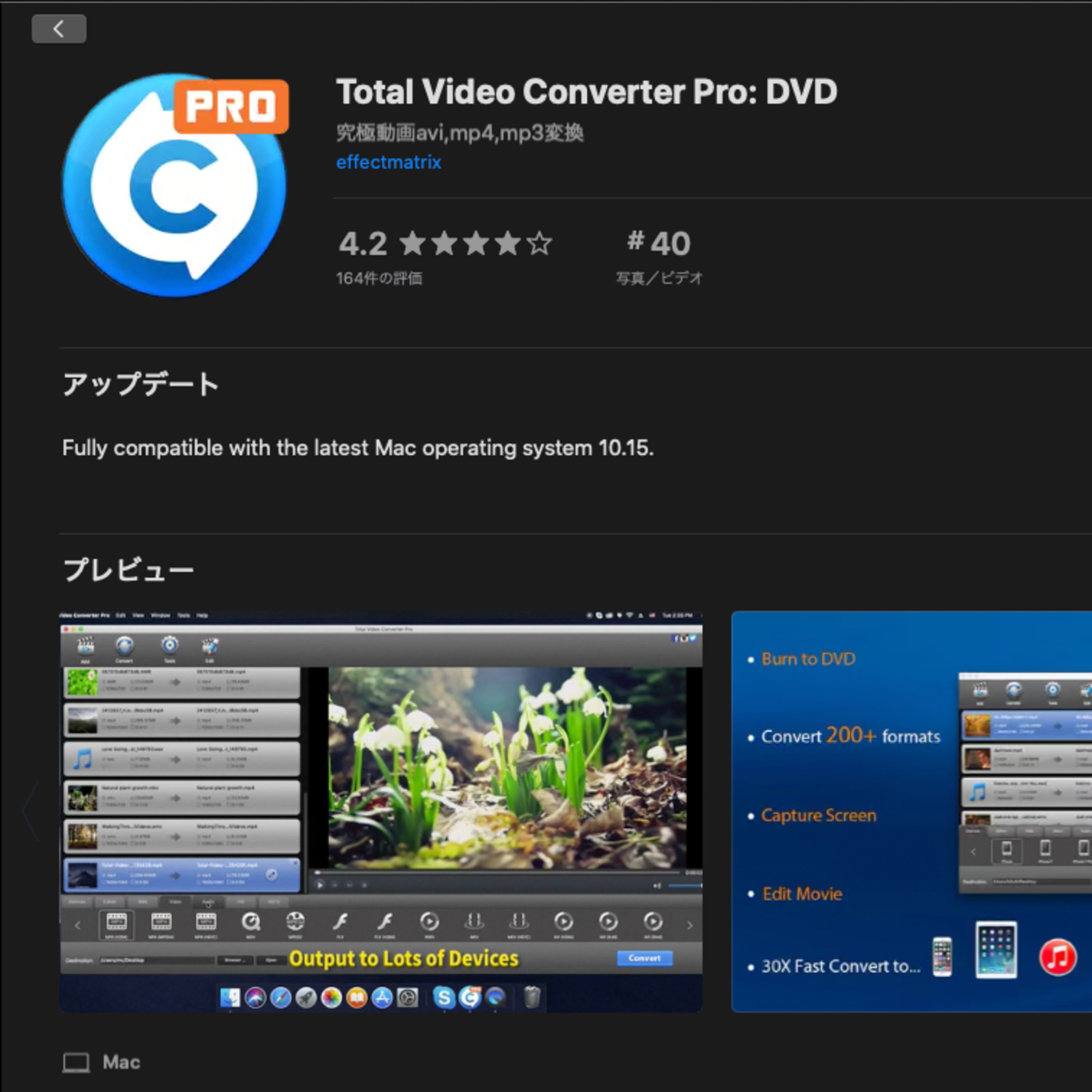 はい、ありがとうございます。今日はMac App Storeで使えるおすすめビデオ変換アプリ、Total Video Converter Proについてご紹介させていただいております。